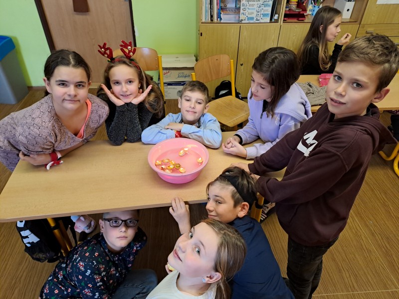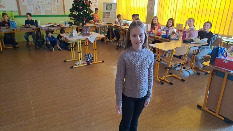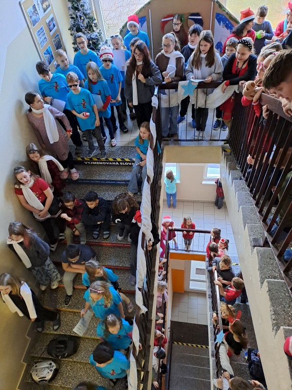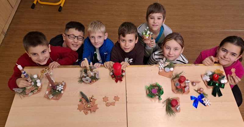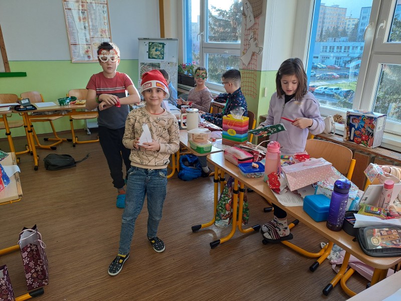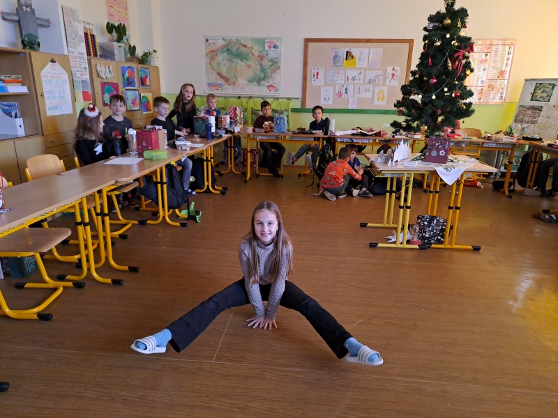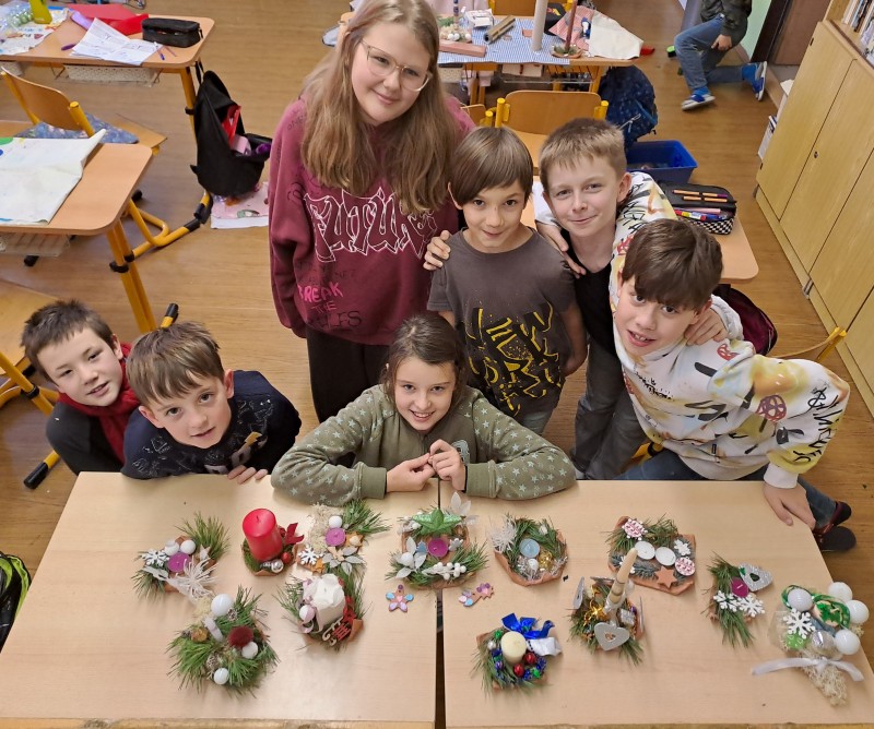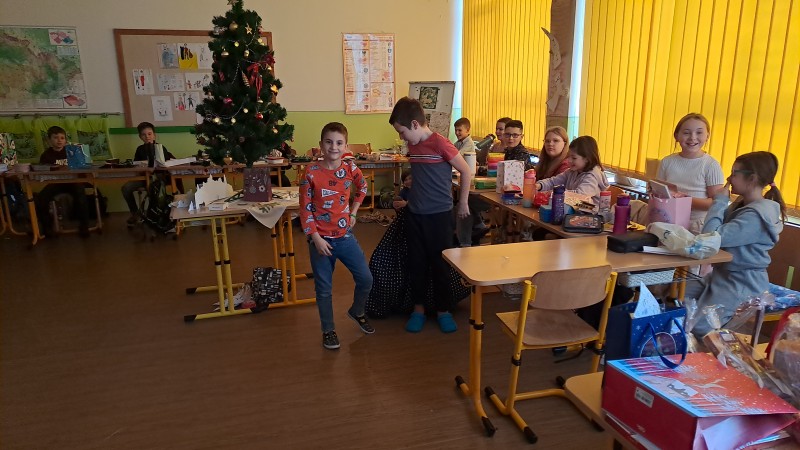 Týden před Vánoci jsme vyráběli svícen a přání. Na poslední školní den jsme si připravili besídku. Připomněli jsme si lidové zvyky, zpívali koledy a bavili se. Kamarádi si předali dárky. Nakonec jsme si popřáli krásné Vánoce a hodně štěstí do nového roku.