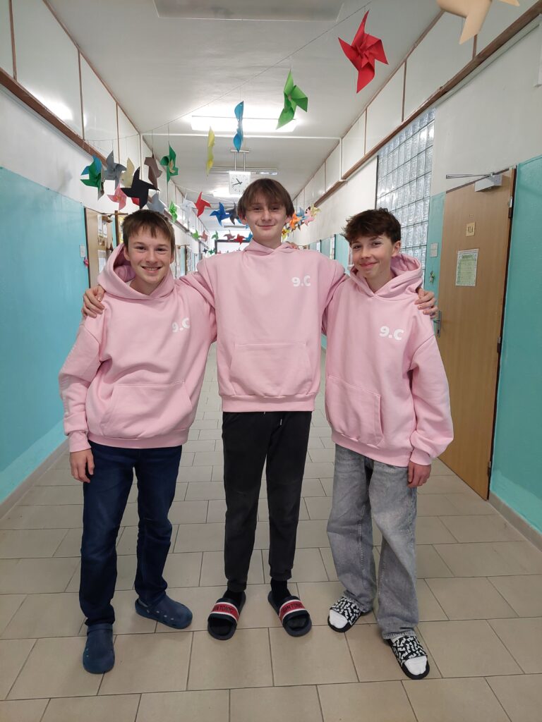 Naše nové mikiny nejsou jen kousek látky. Jsou vzpomínkou na devět let plných smíchu, přátelství a okamžiků, které nás navždy spojily. Každý detail v sobě nese příběh – o prvním dni, kdy jsme se poznali, o všech výletech, třídních akcích i chvílích, kdy jsme stáli při sobě. Dnes je nosíme s hrdostí, protože nejsou jen oblečením. Jsou symbolem toho, že 9. C byla a vždycky bude jedna parta. A hlavně… strašně se nám líbí! ❤️