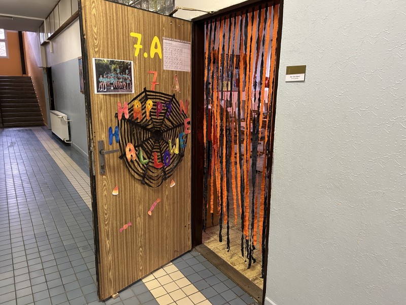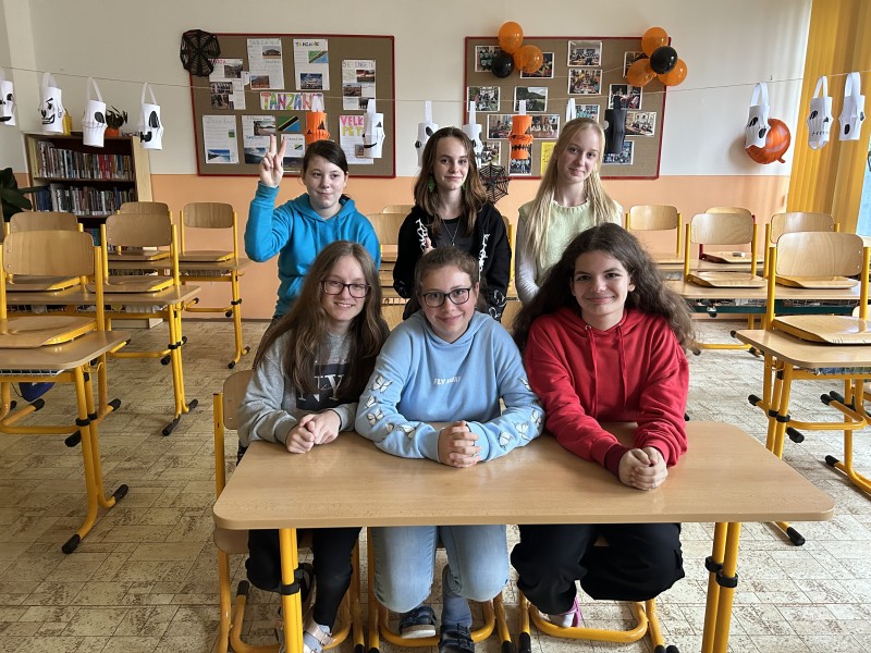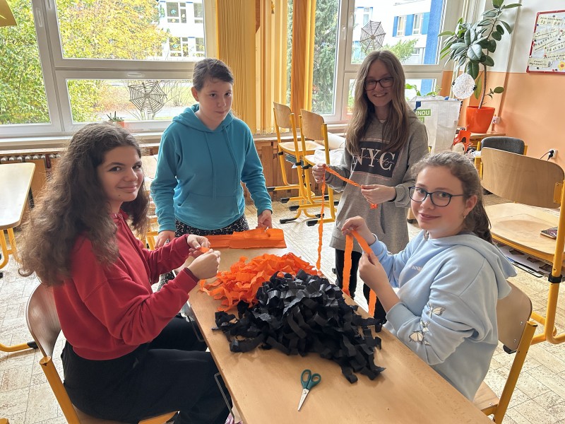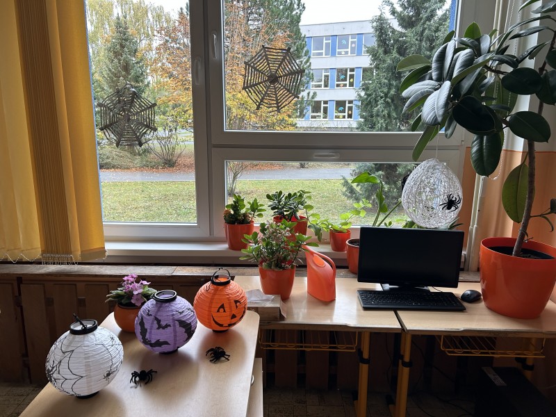 Také naše třída připravila výzdobu na zítřejší Halloween. Velké poděkování si zaslouží Pája, Natálka, Petruška, Sabča, Sofya, Anička, Eliška a Kuba za to, že ve škole zůstali po vyučování a třídu společně vyzdobili. A moc se jim to povedlo :-)