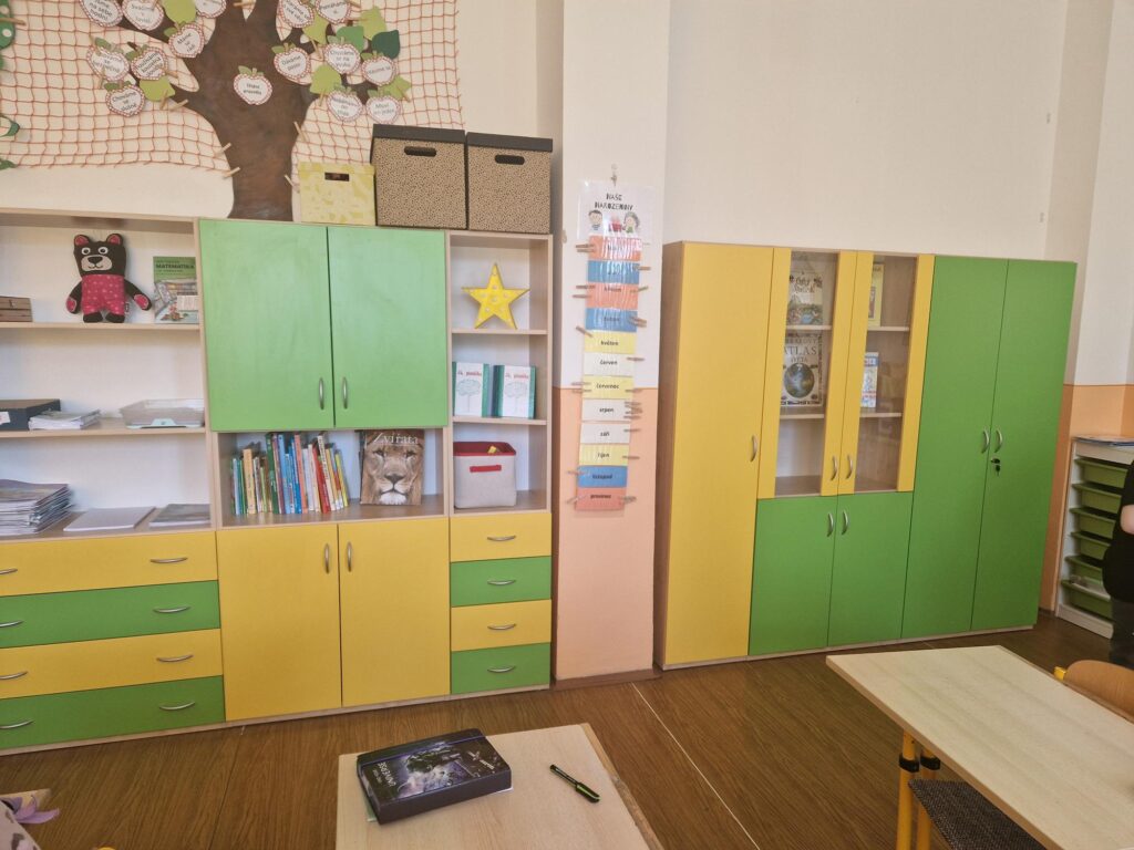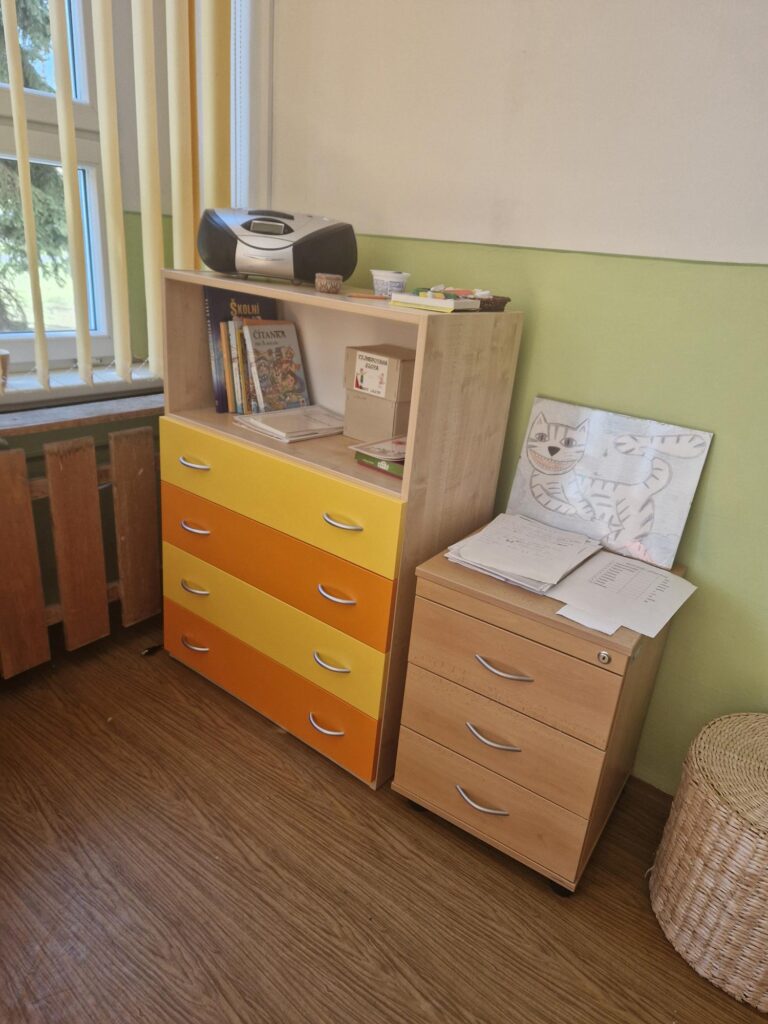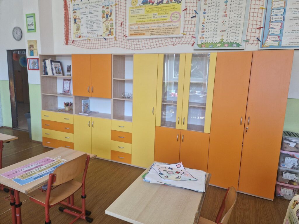Aby se u nás naši nejmenší cítili příjemně, pořídili jsme do budoucích prvních tříd nový nábytek, v jehož obměně hodláme pokračovat po celé škole. Tak ať se vám u nás líbí, naši budoucí školáčci!🙂