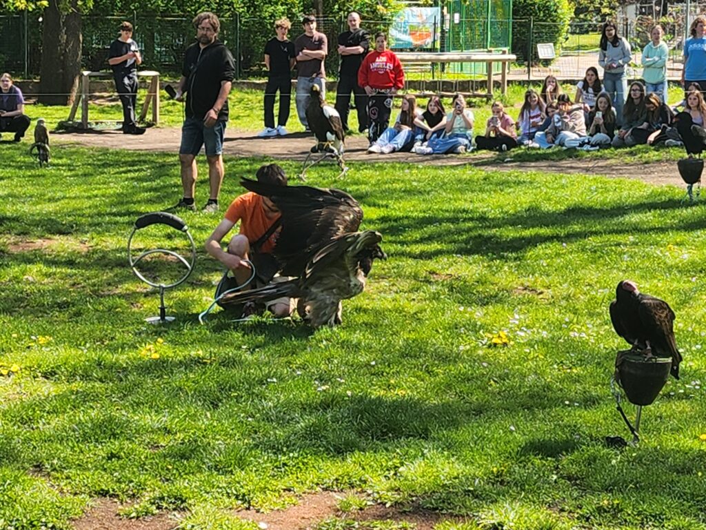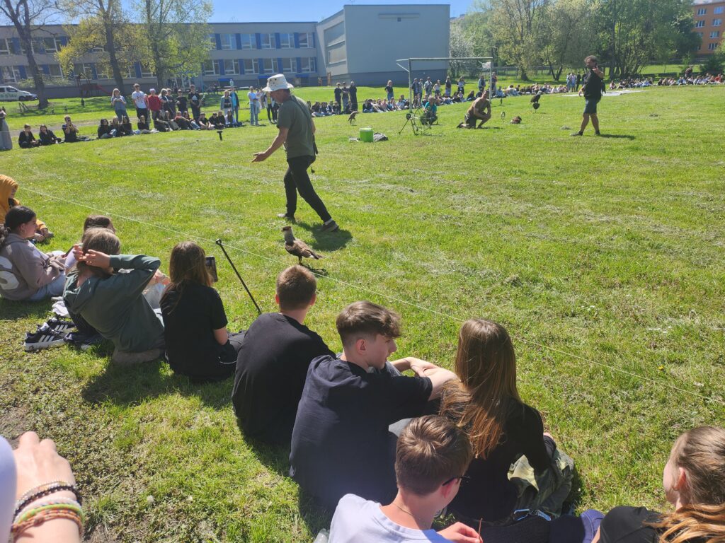 V úterý jsme ve škole prožili zajímavý projektový den zaměřený na téma dravci a životní prostředí. Dopoledne jsme ve skupinách pracovali na projektech o našich dravcích – každá skupina si vybrala konkrétního dravce a připravila prezentaci o jeho životě, výskytu a ochraně. Poté jsme se vydali do parku, kde probíhala akce Ekoden. Dozvěděli jsme se zde více o správném třídění odpadu, fungování technických služeb v Lounech a dalších ekologických tématech. Celý den jsme zakončili na školním hřišti, kde jsme zhlédli poutavou sokolnickou show s živými dravci, která nás všechny nadchla.
