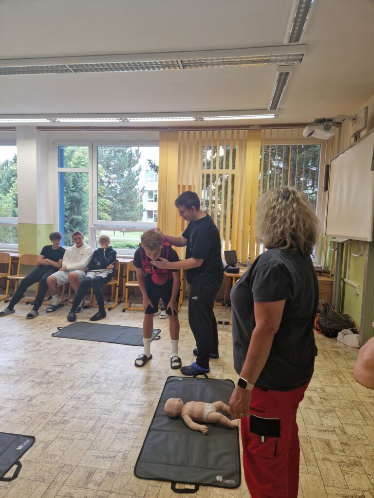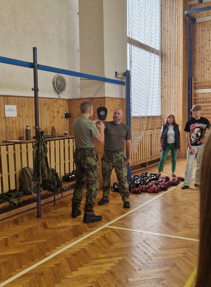 V pondělí 15. 9. si vyzkoušeli žáci 9. a někteří i 8. ročníku, jaké to je, když se musím někomu bránit nebo naopak zachraňovat někomu život. Proběhl projektový den pod názvem POKOS - příprava obyvatel k ochraně státu. Pod vedením zkušených lektorů z Armády ČR a záchranářek Českého červeného kříže si žáci na vlastní kůži vyzkoušeli střelbu, sebeobranu i resuscitaci zraněného. Takové zkušenosti mohou být v životě k nezaplacení.