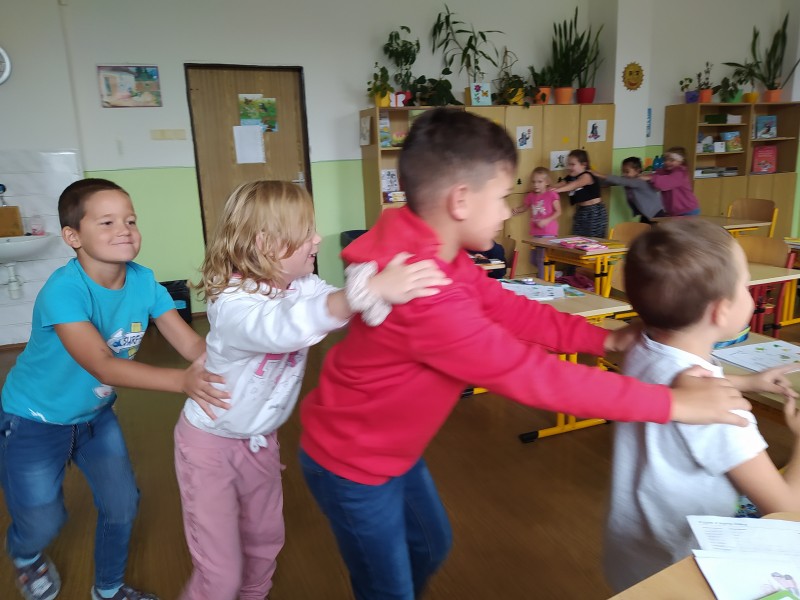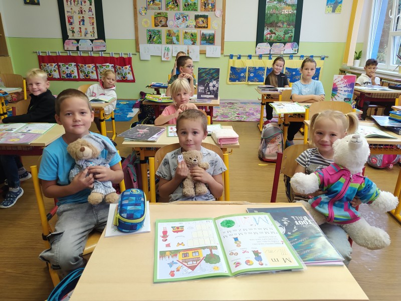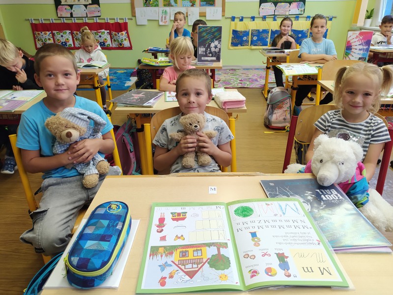 Hledali jsme ho mezi ostatními písmeny, vyznačovali, dokonce jsme ho i modelovali, psali. Poslouchali jsme, kde slyšíme jeho zvukovou podobu, a naučili jsme se o něm i básničku. Je totiž o malém medvídku, kterého máme moc rádi a je náš kamarád. Také jsme si ho přinesli a ukázali ostatním dětem.