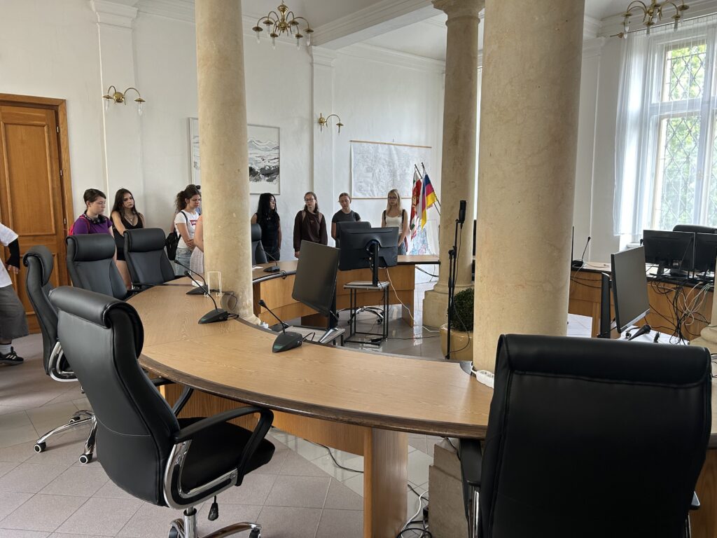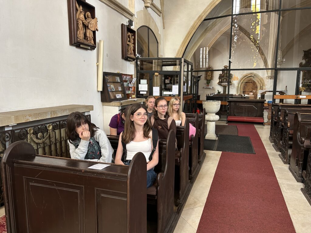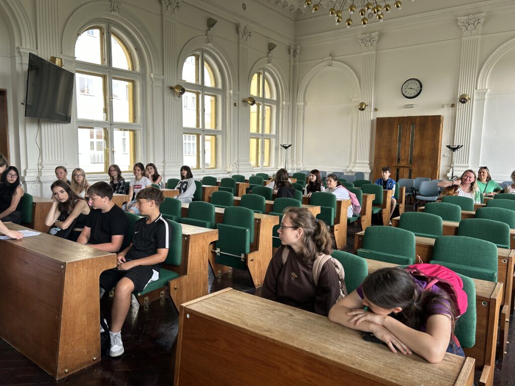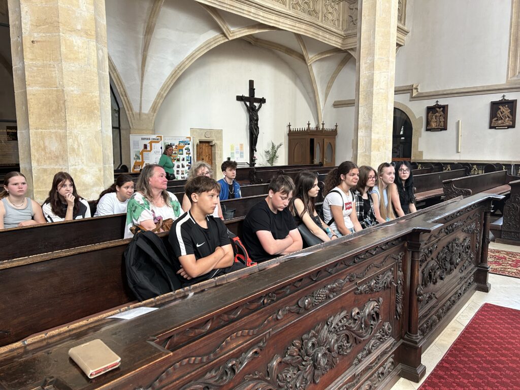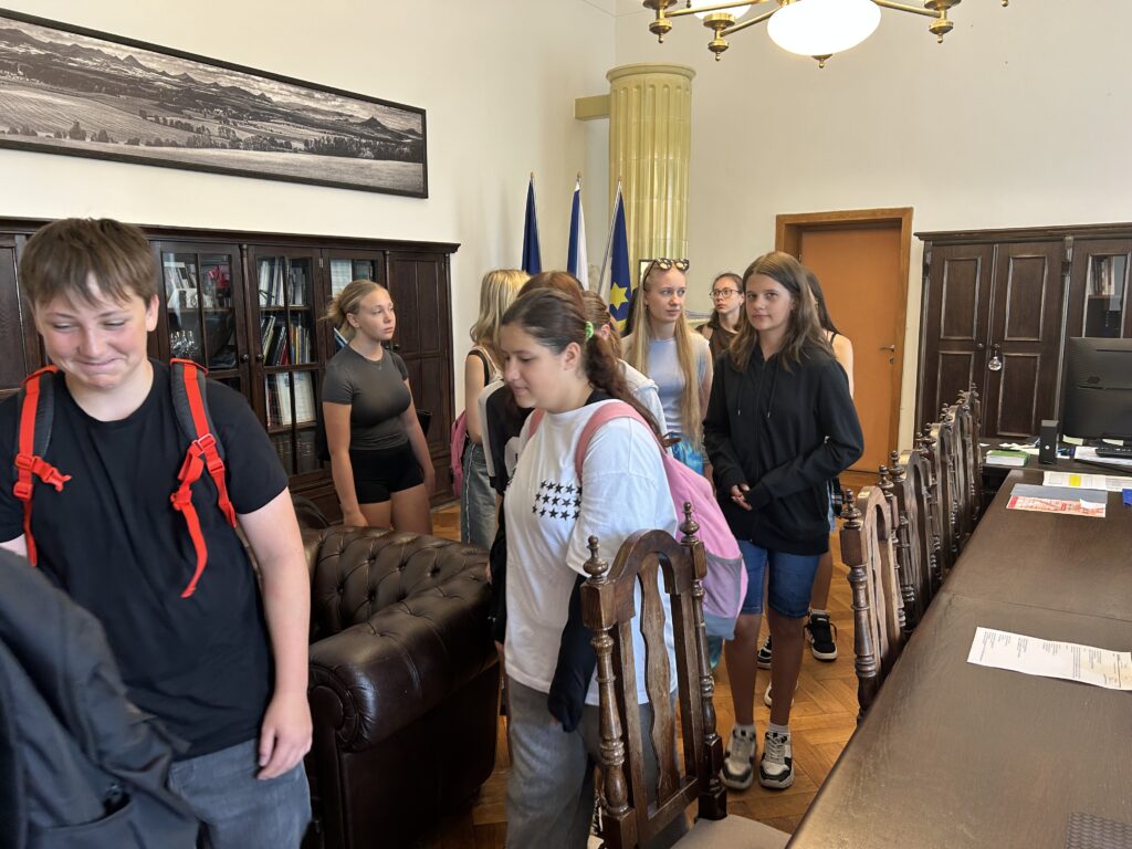 Ve čtvrtek 19. června jsme se vypravili nejprve na lounskou radnici, kde jsme si prohlédli kancelář starosty, velkou i malou zasedací síň, obřadní síň a další zajímavá místa. Potom jsme se přesunuli do chrámu sv. Mikuláše a následně jsme vystoupali až na věž, odkud byl krásný výhled na město. Ti, kteří zůstali až do konce vyučování, se ve městě občerstvili a pokračovali do parku.
