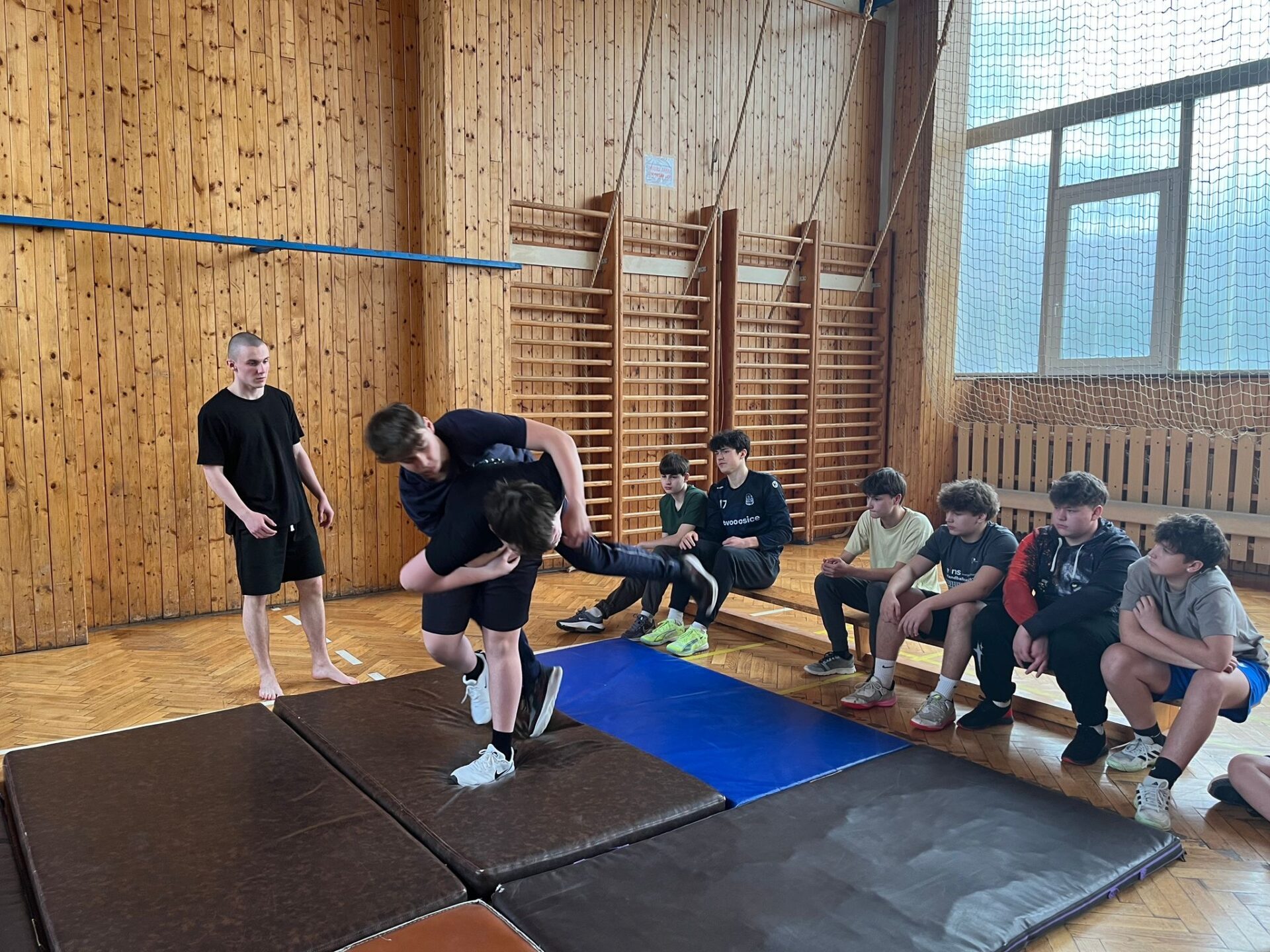 V hodině tělesné výchovy jsme si v úterý 27. ledna pod vedením bývalého žáka naší školy procvičili základy sebeobrany a připomněli si, jak se bránit případnému útočníkovi.