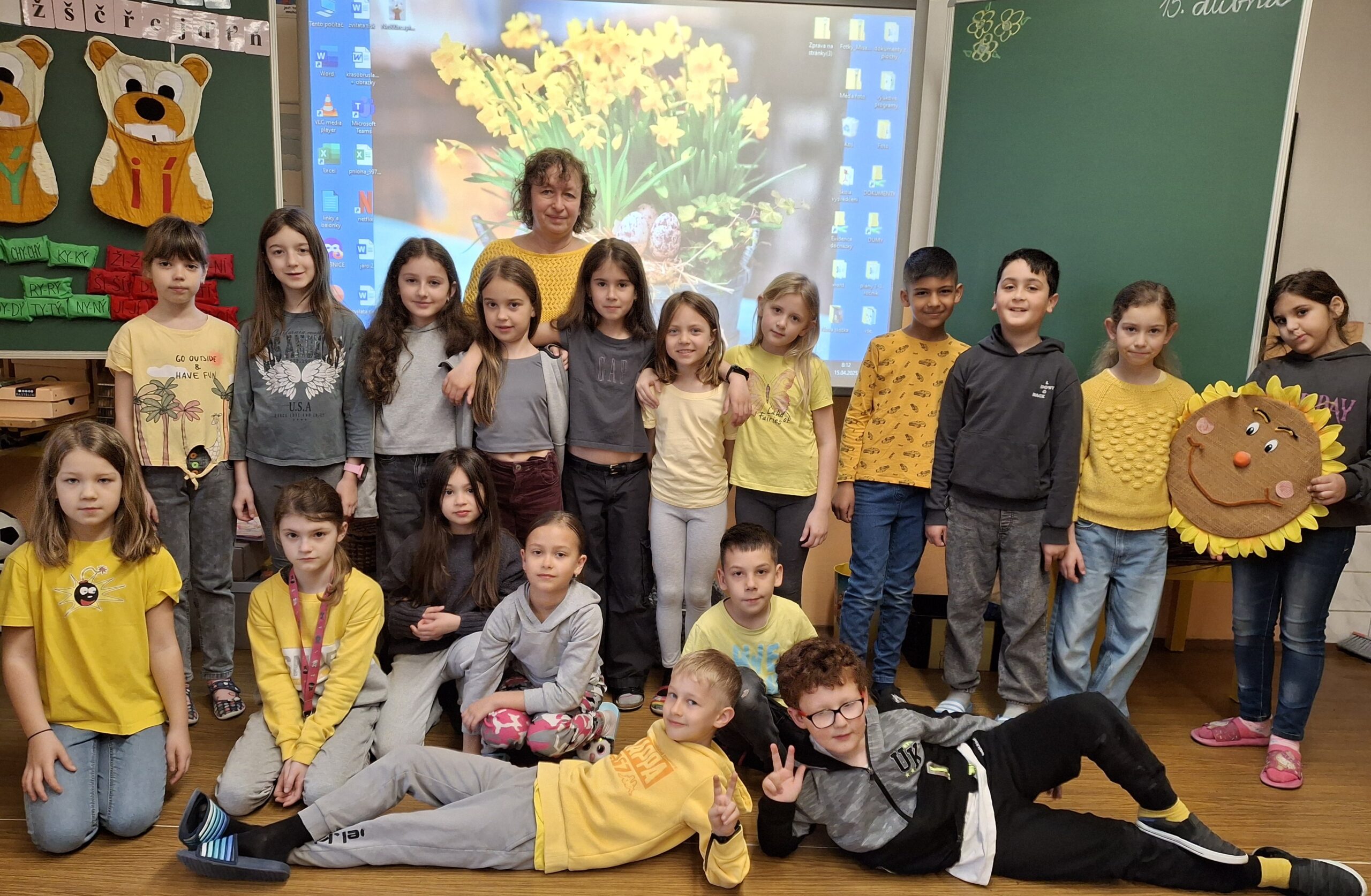 Také dnes děti čekaly nové informace o pašijovém dni a plnění různých úkolů. Soutěžili jsme o nejrychleji složené "rozbité" vejce. Někteří dokončovali pomlázky, jiní tvořili velikonočního zajíce z ponožky. Také jsme si udělali zápich do osení. V hodině tělesné výchovy si děti zahrály hru "Vejce - kuře - slepice" a pak z trampolíny naskákaly do "kurníku". Poslední hodinu nás čekal výlet za jarními kytičkami.