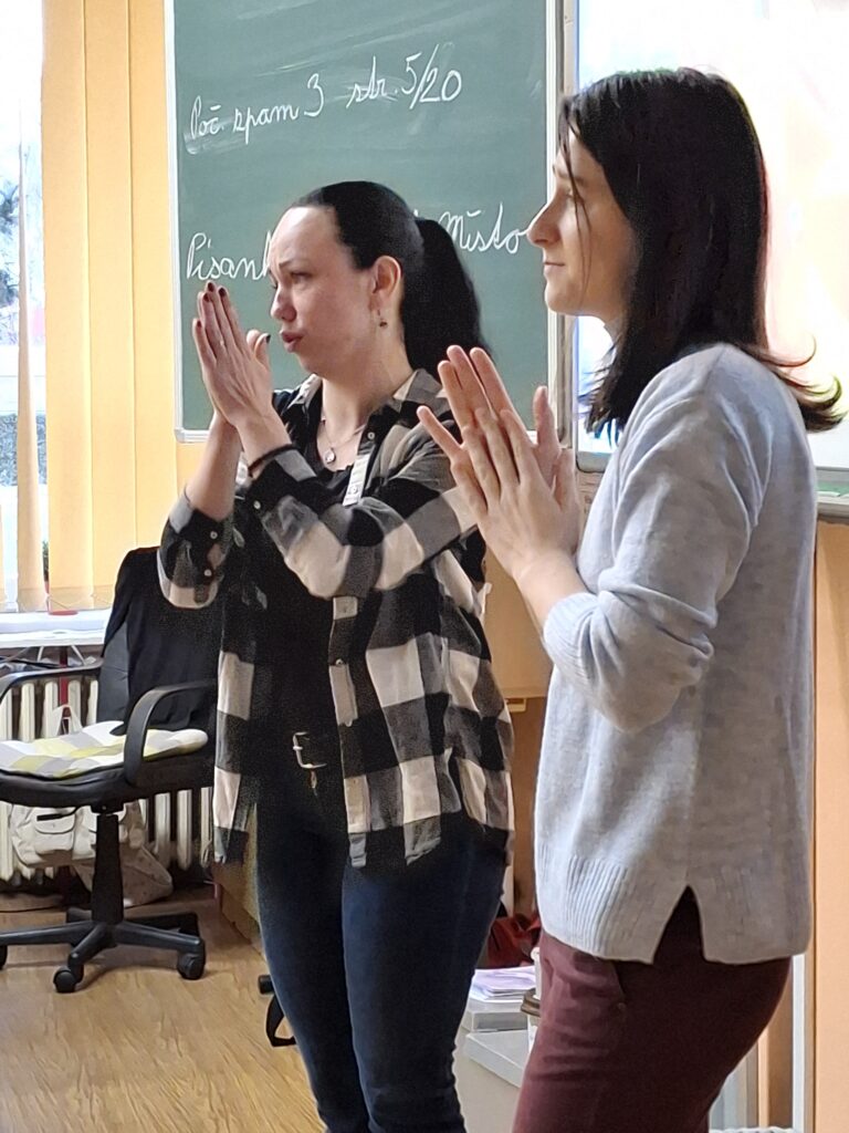 Tlumočnice dětem poradily, jak správně a ohleduplně komunikovat s lidmi se sluchovým omezením, a naučily je také řadu zajímavých posunků, které si žáci s nadšením vyzkoušeli v praxi.