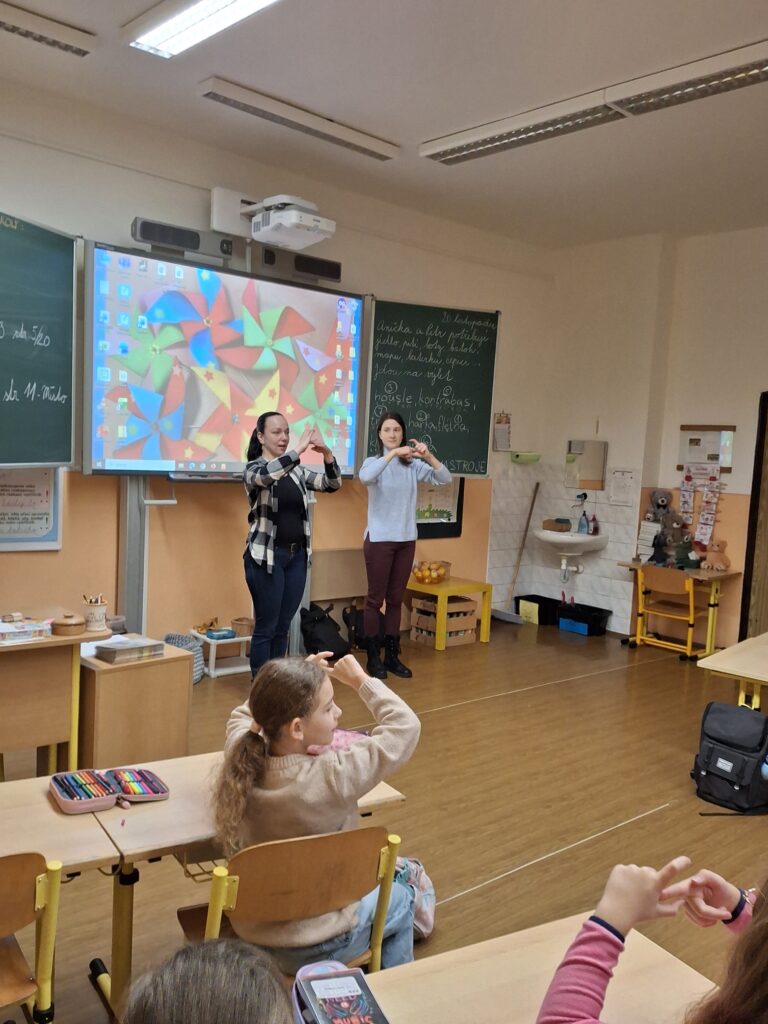 Naši školu navštívily tlumočnice znakového jazyka, které dětem poutavě přiblížily svět lidí se sluchovým postižením. Žáci se dozvěděli o různých typech sluchového postižení a o tom, jak může každý z nás přispět k lepší komunikaci a porozumění.