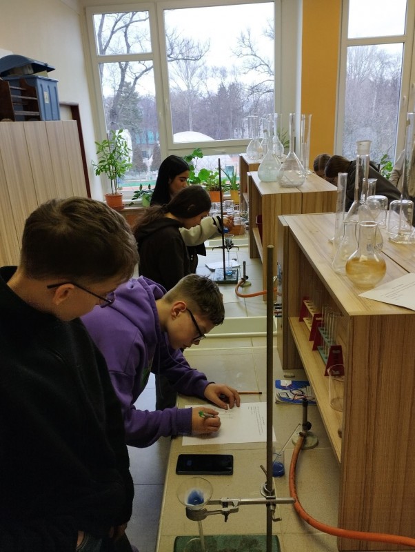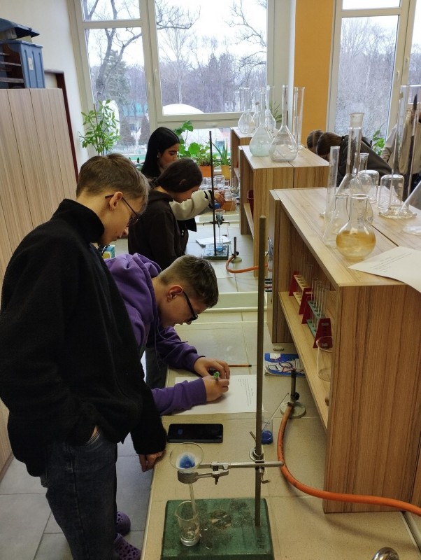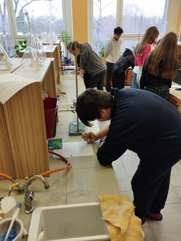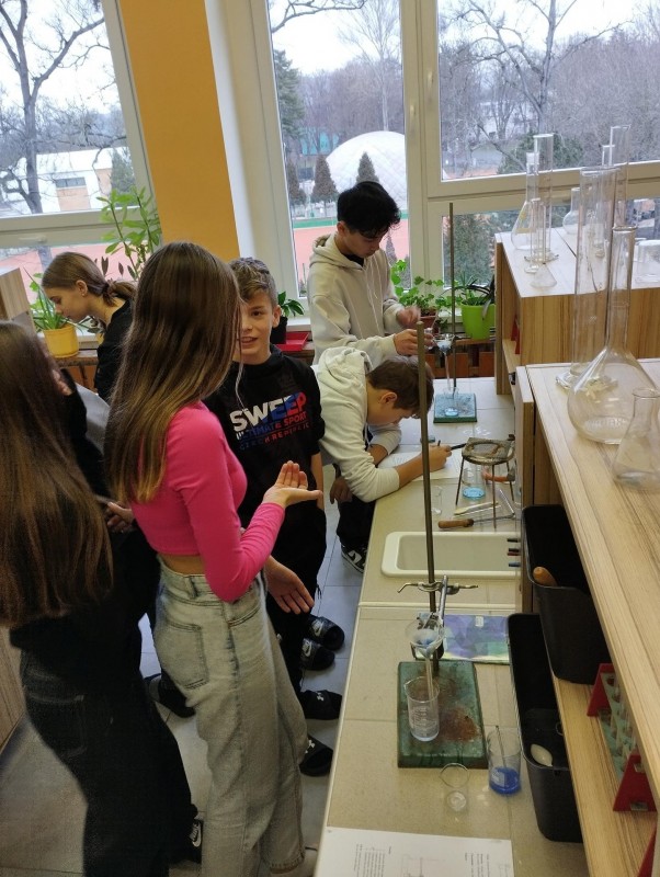 První pololetí s chemií mají osmáci již za sebou, a tak se základními znalostmi vyrazili i do laboratoře. Nikdo se nezranil a všichni pracovali s nadšením.