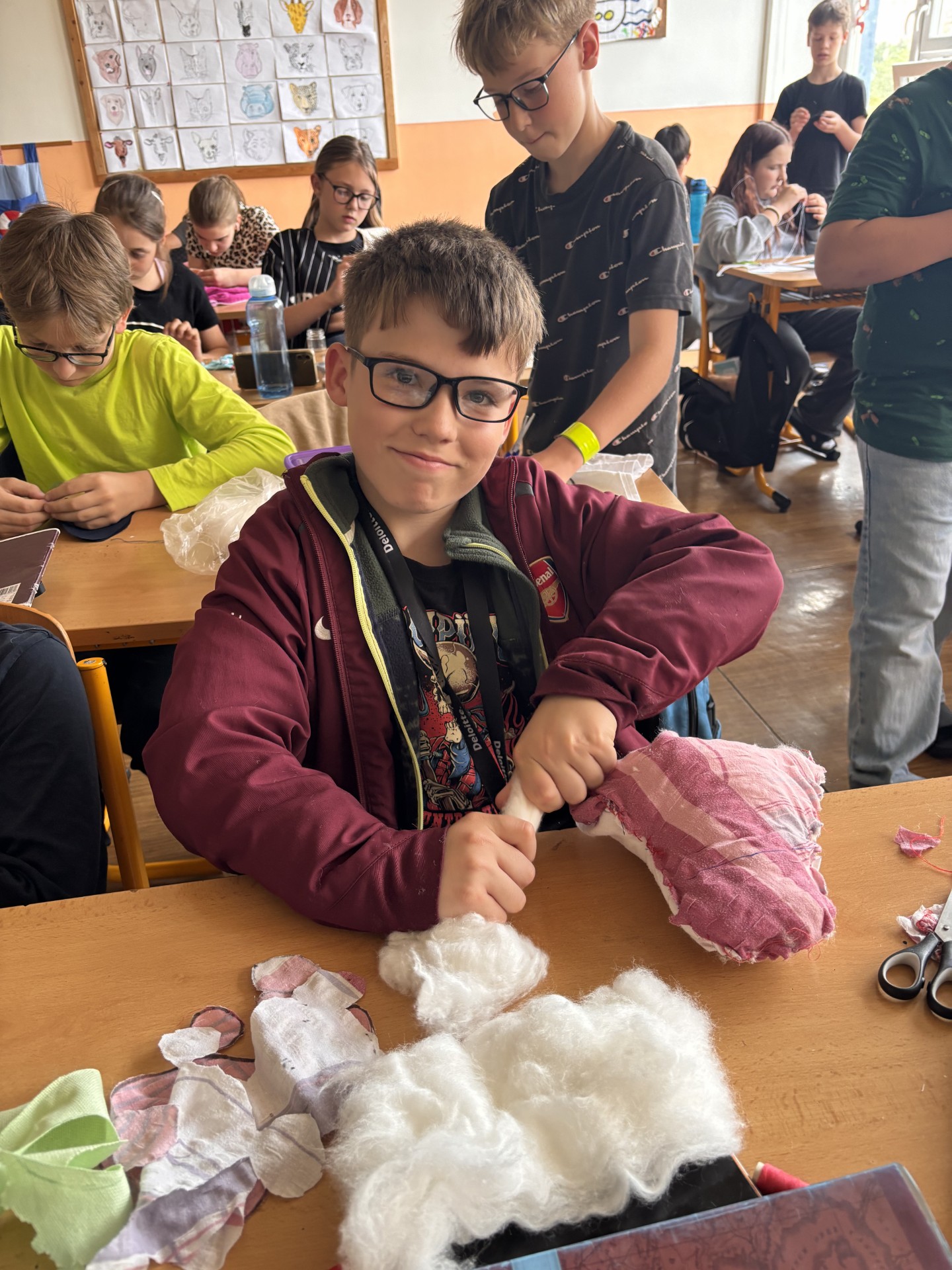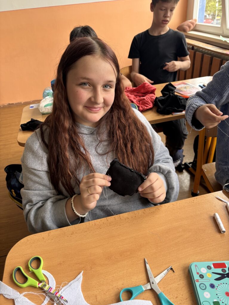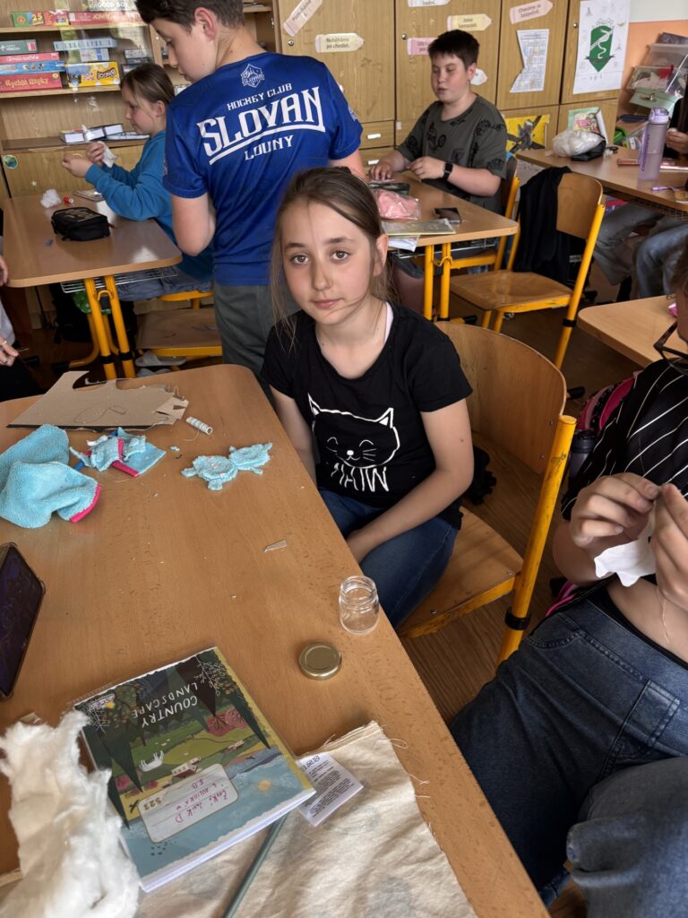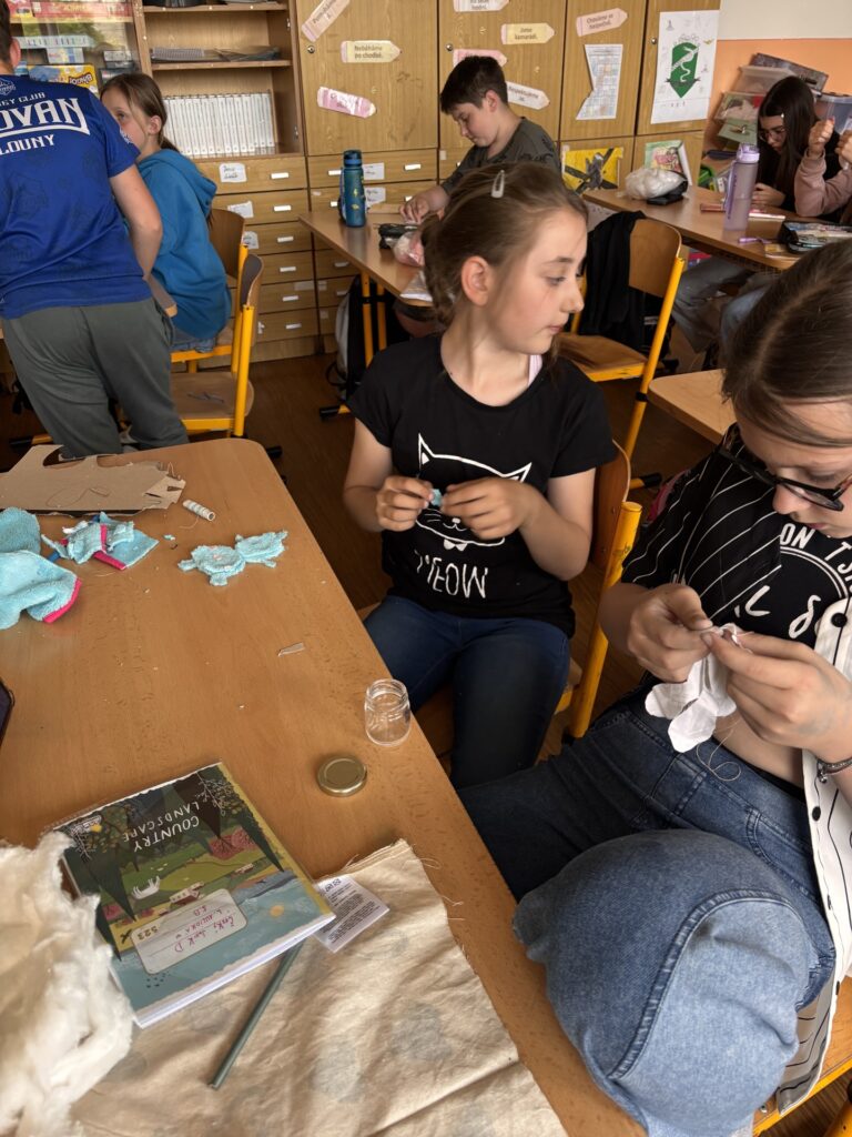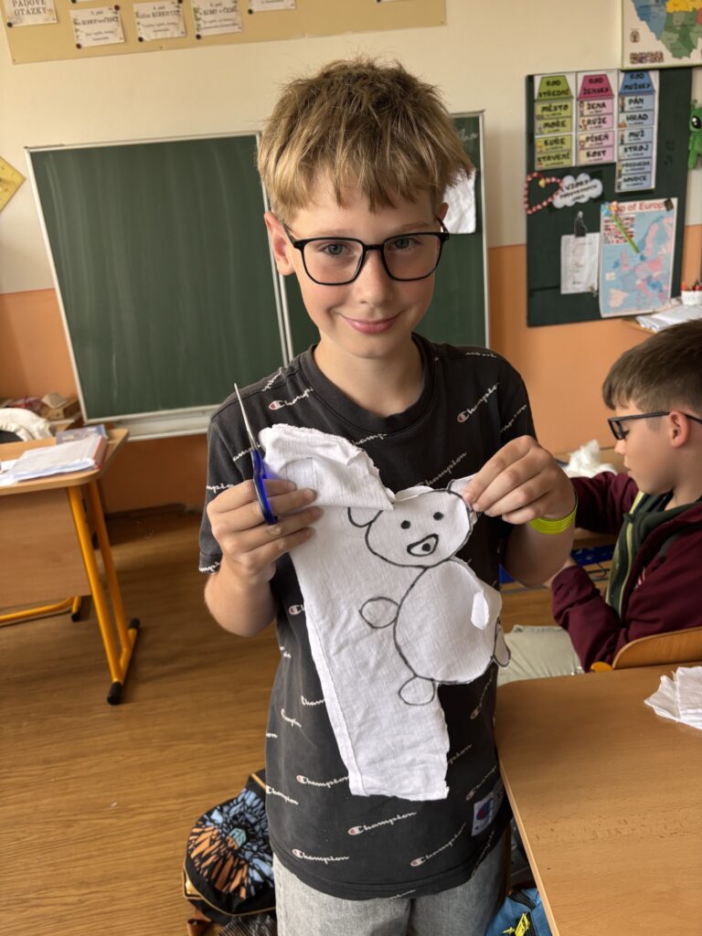 Každý z nás si navrhl a ušil vlastního plyšáka z látky a výplně.