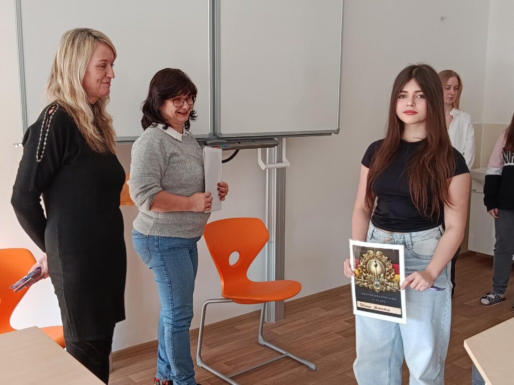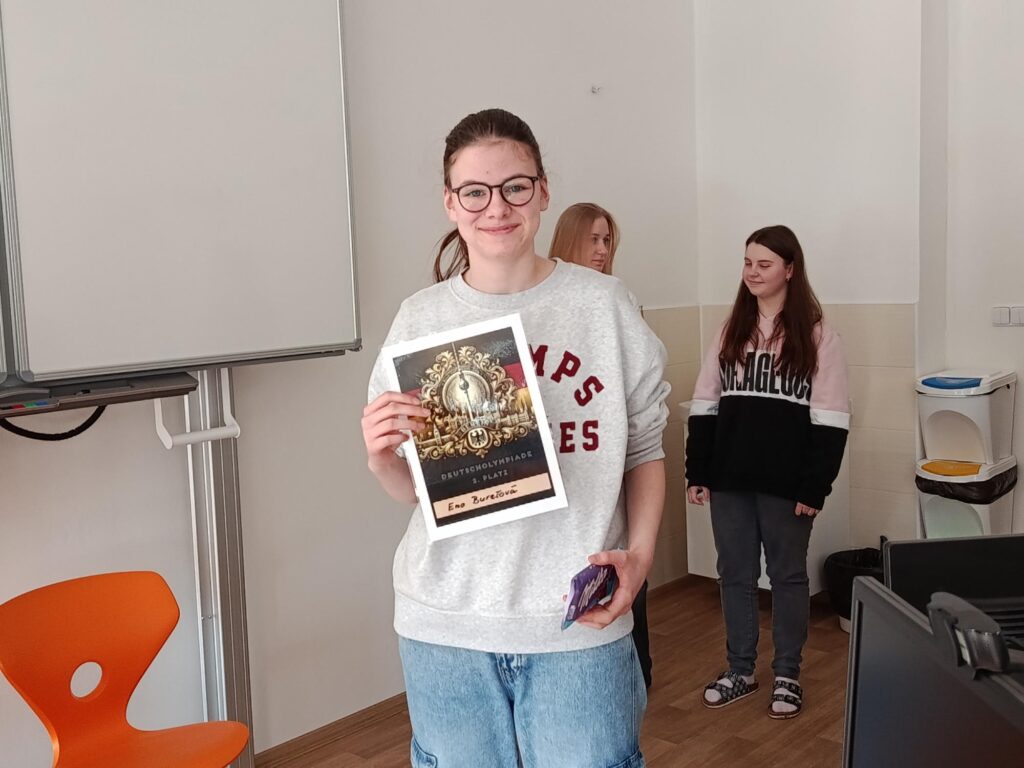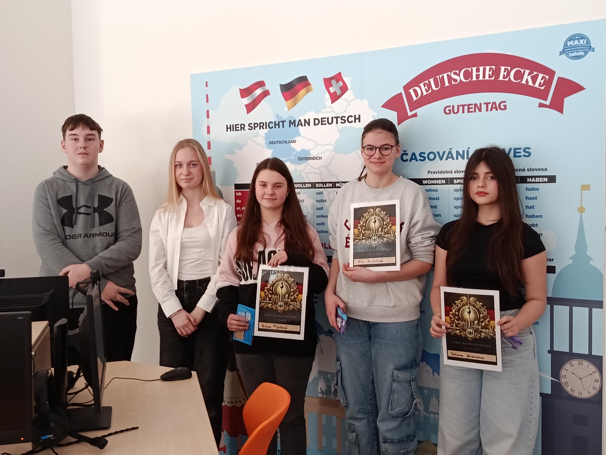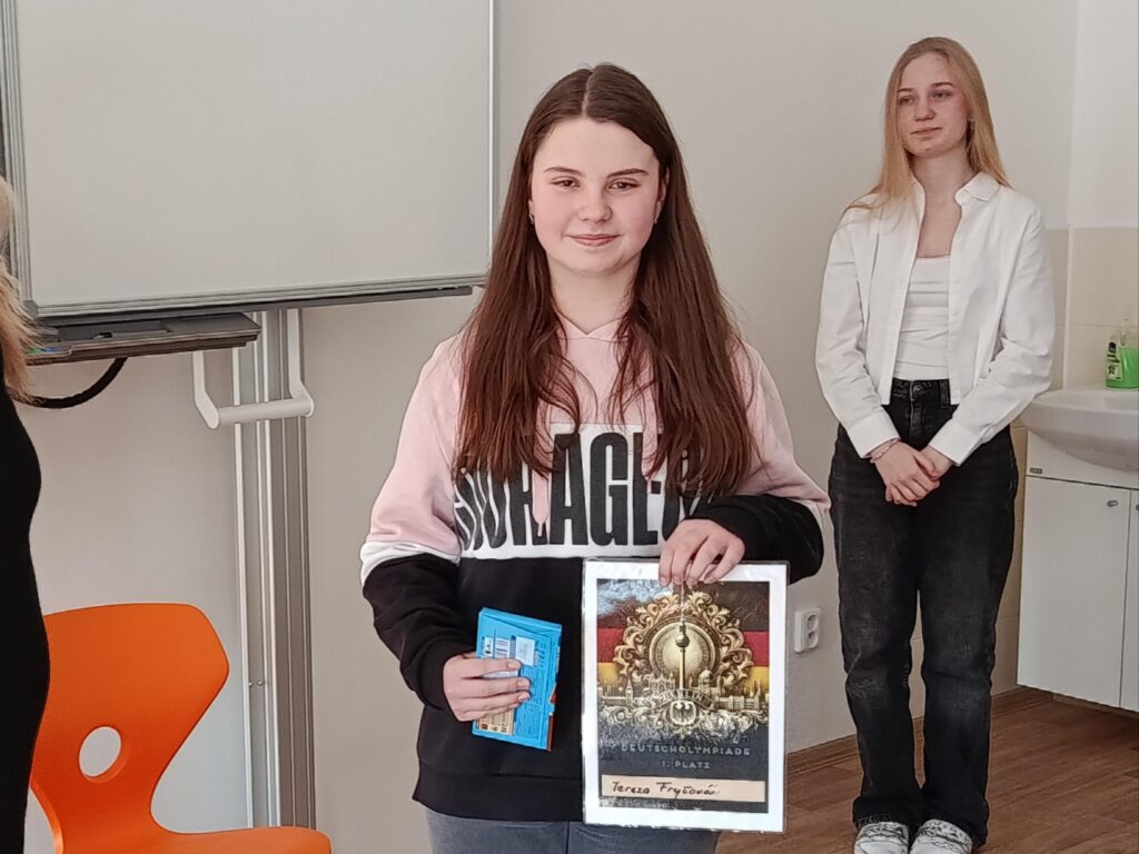 Ve středu 19. února proběhlo školní kolo olympiády v němčině, do kterého se probojovalo 6 nejlepších žáků, kteří se nominovali z třídních kol. Všichni předvedli moc pěkné výkony a ukázali, že jsou schopni se v němčině domluvit. Na 1. místě se umístila Tereza Fryčová, na 2. místě Ema Burešová a na místě 3. Tetiana Yaremchuk, všechny z 8. B. Terezka postupuje do kola okresního, kde jí budeme pevně držet palce✊.