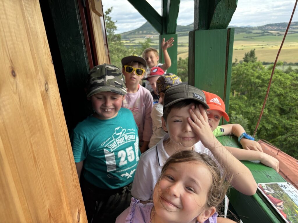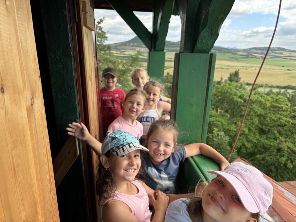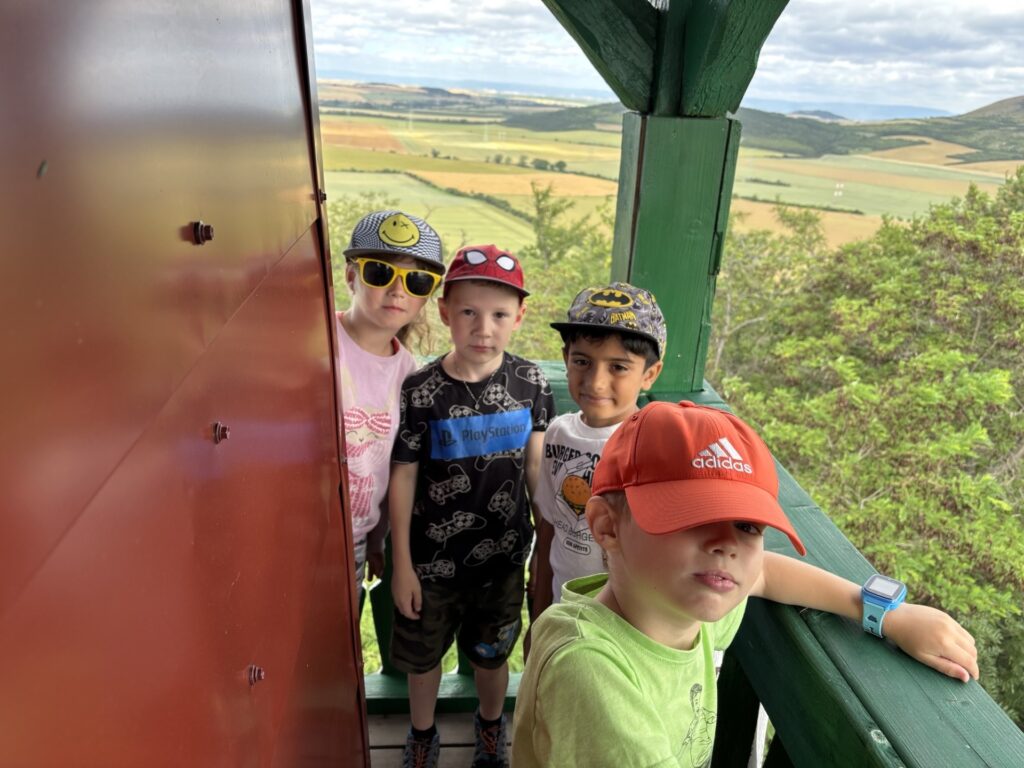 Náš cíl byl Červený vrch. Společně jsme hravě zvládli pěší výlet, vystoupali jsme i na rozhlednu, pokochali jsme se nádherným výhledem na Louny i panoramatickým pohledem na České středohoří!!!
