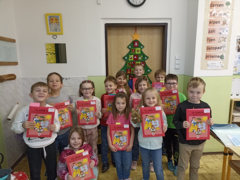Dnes nás v kalendáři čekal neobvyklý úkol. Máme si rozdat a začít číst slabikáře. Naše radost byla obrovská.