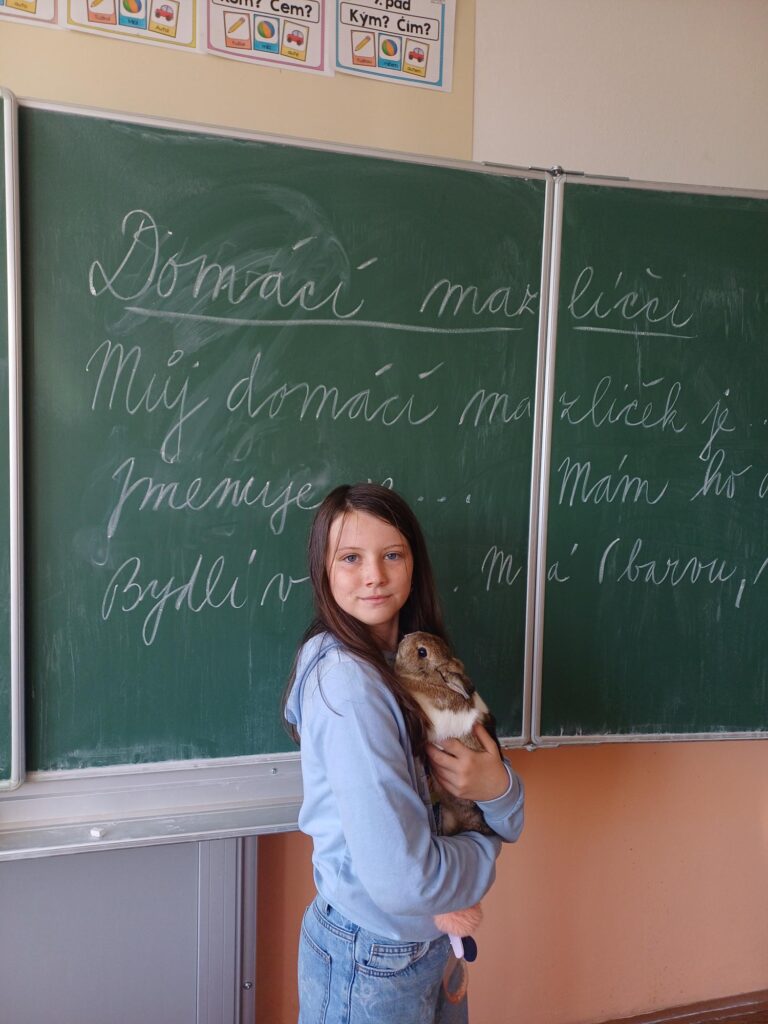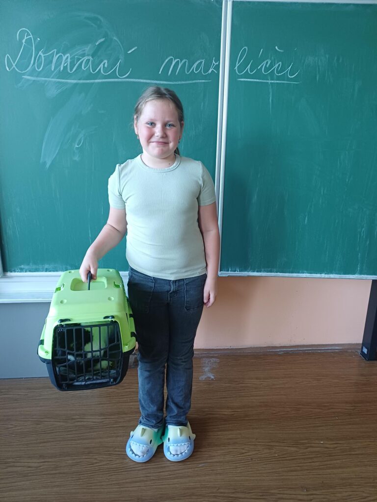 V hodině slohu jsme si tentokrát povídali o našich domácích mazlíčcích. Každý žák si přinesl svého zvířecího kamaráda – nebo alespoň jeho fotografii či hračku – a popsal ho spolužákům. Dozvěděli jsme se, jak se mazlíčci jmenují, co mají rádi a čím jsou výjimeční. Bylo to veselé setkání plné vyprávění, zajímavostí i smíchu.