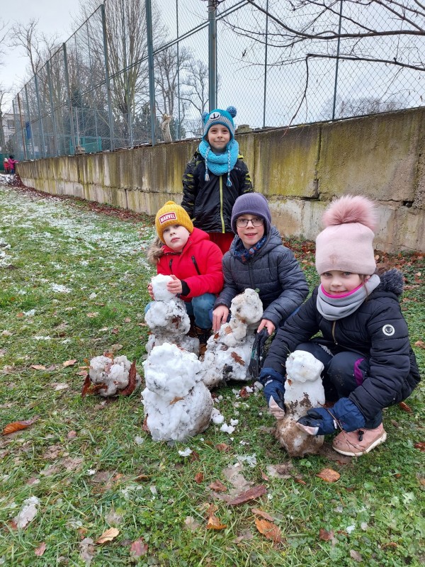 Z posledního zbytku napadlého sněhu jsme ve školní družině vykouzlili různé příšerky.