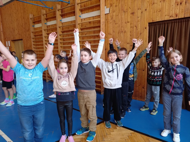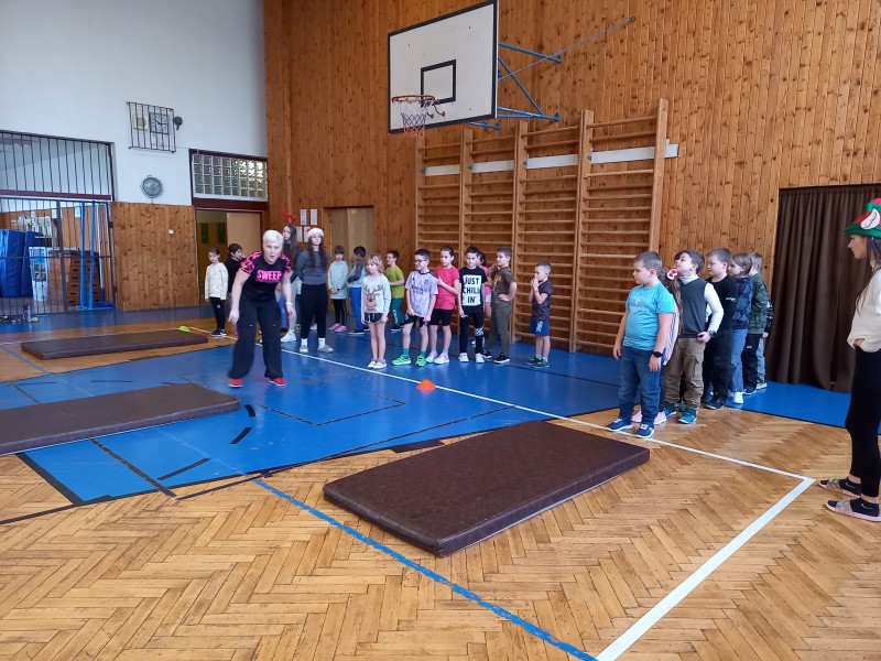Zábavu si pro nás připravily děti z 8.C.  Moc se nám dopoledne v tělocvičně líbilo.