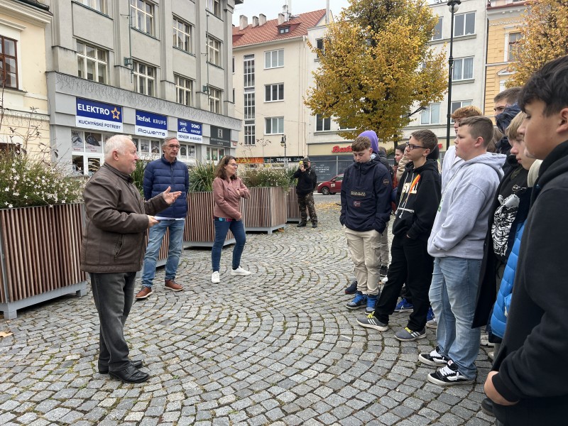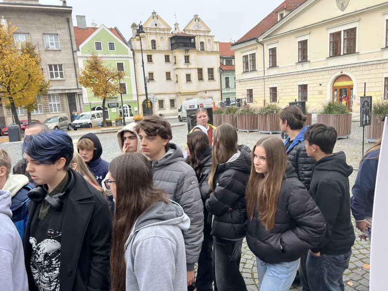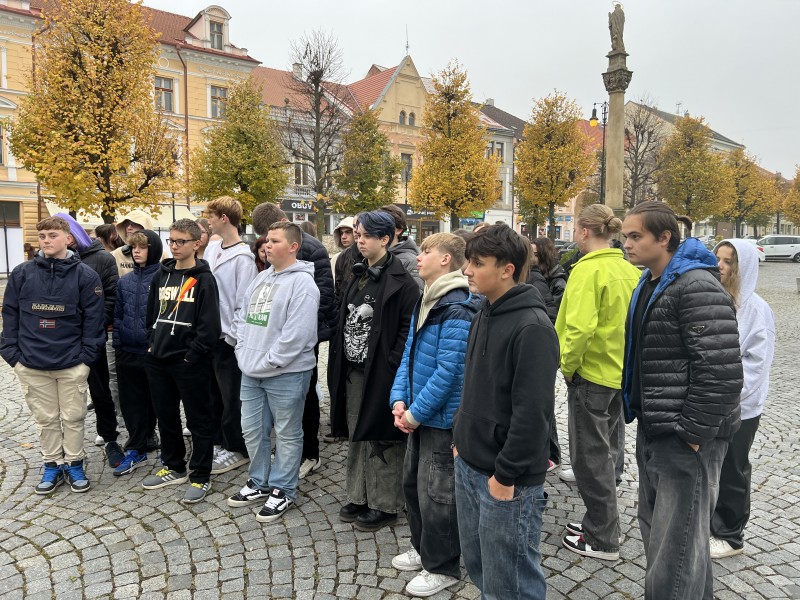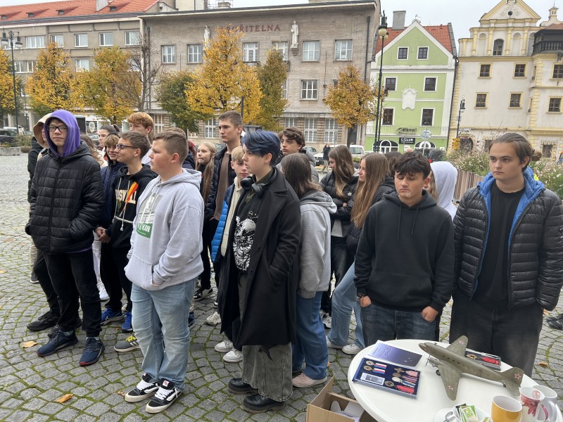 V úterý 22.10. jsme se zúčastnili vzpomínkové akce na Mírovém náměstí. Pan Jaroslav Tošner nás seznámil s operací Jan Kozina, která u nás omylem započala 17.10.1944 a velel jí Vasil Kiš. Výsadek byl sedmnáctičlenný, původně směřoval na Šumavu. Někteří ze skupiny padli v boji, jiní byli zajati, jiní převezeni do Terezína, dva měli štěstí a zvládli se ukrývat do konce války. Děkujeme za přiblížení tohoto období a za informace o padlých sovětských výsadkářích na Mělcích.