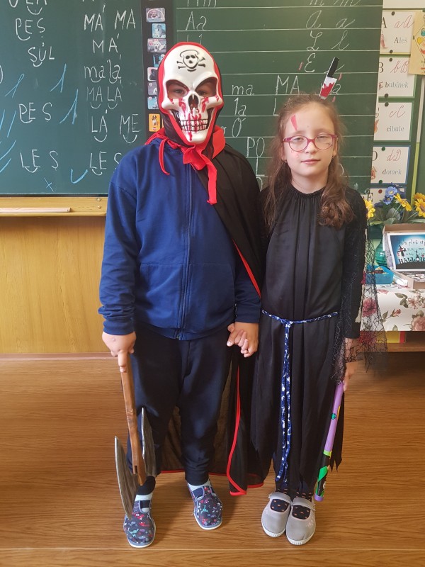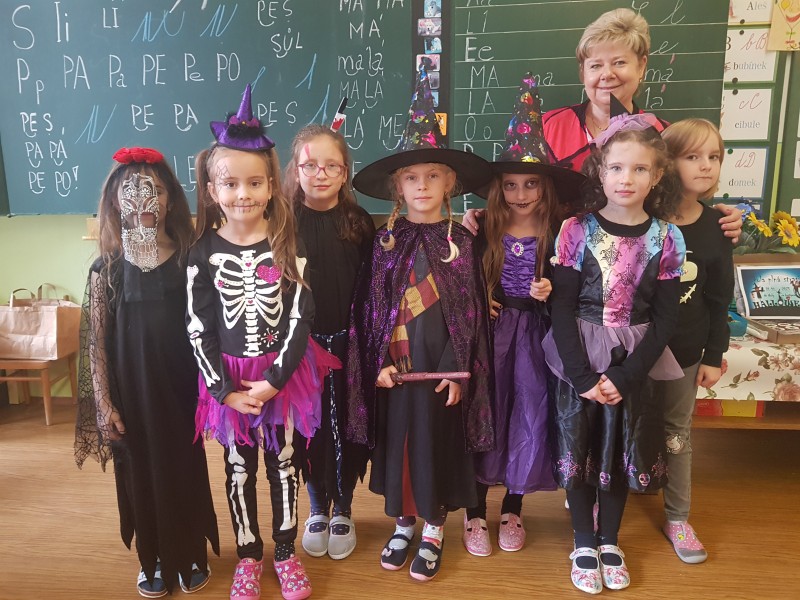 Krásné masky, veselá nálada, dobroty od maminek a trocha strachu - to byl dnešní den u nás ve škole.