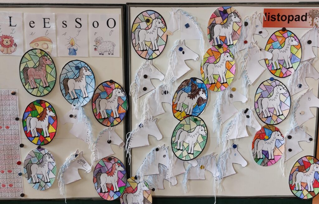 Milí rodiče, dnes jsme s dětmi pracovali na projektu o svatém Martinovi. Společně jsme si povídali o jeho životě, o tom, proč se svátek slaví a jaké tradice se k tomuto dni vážou. Děti si vyrobily papírové koníky, zazpívaly si písničku a vyzdobily třídu. Při tvoření jsme rozvíjeli jemnou motoriku, spolupráci i schopnost naslouchat příběhu a hledat v něm poselství o pomoci a laskavosti.