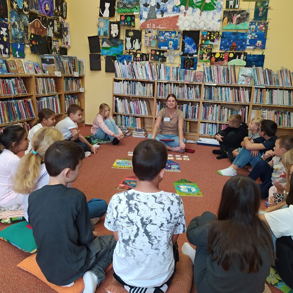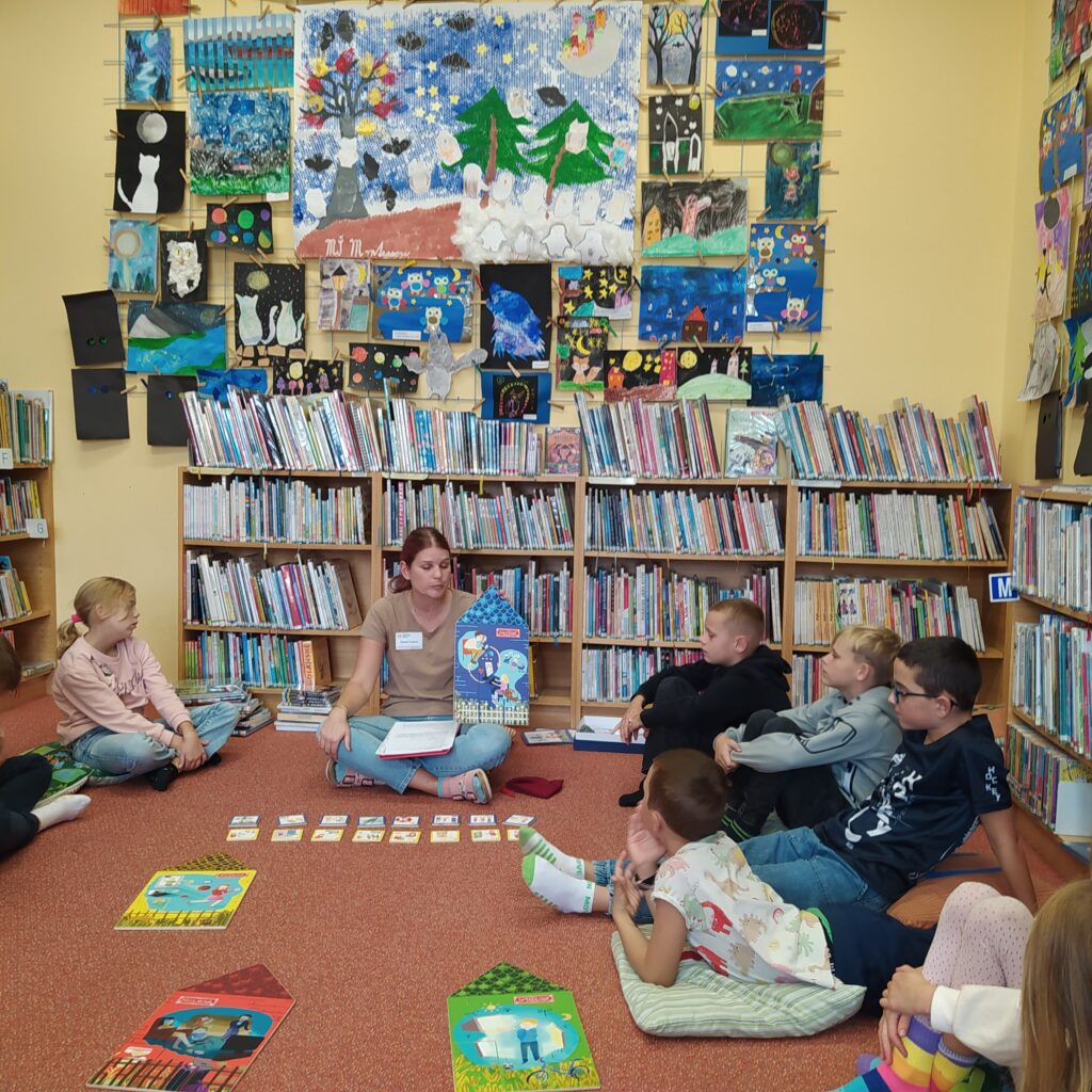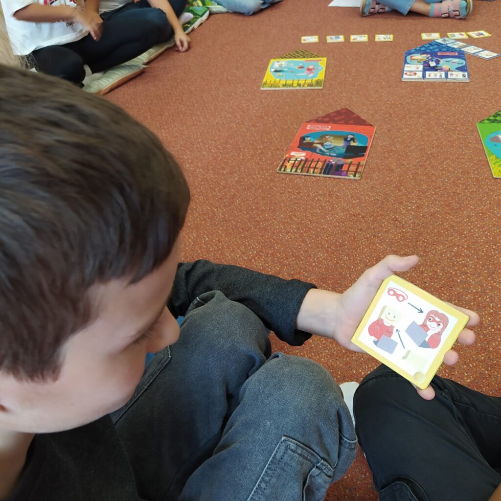 Po svačině jsme se přesunuli do knihovny na preventivní program rizikového chování s názvem Městečko Kybernetov. Hra se skládá z příběhů čtyř domečků, ve kterých žijí děti. Ty potřebují naši pomoc s odstraněním nesprávných návyků, které se týkají kyberšikany, kyberroomingu a netholismu.
