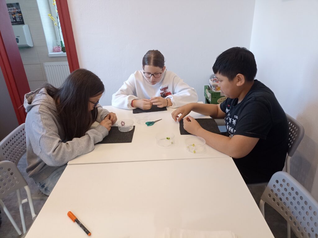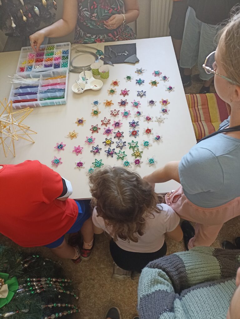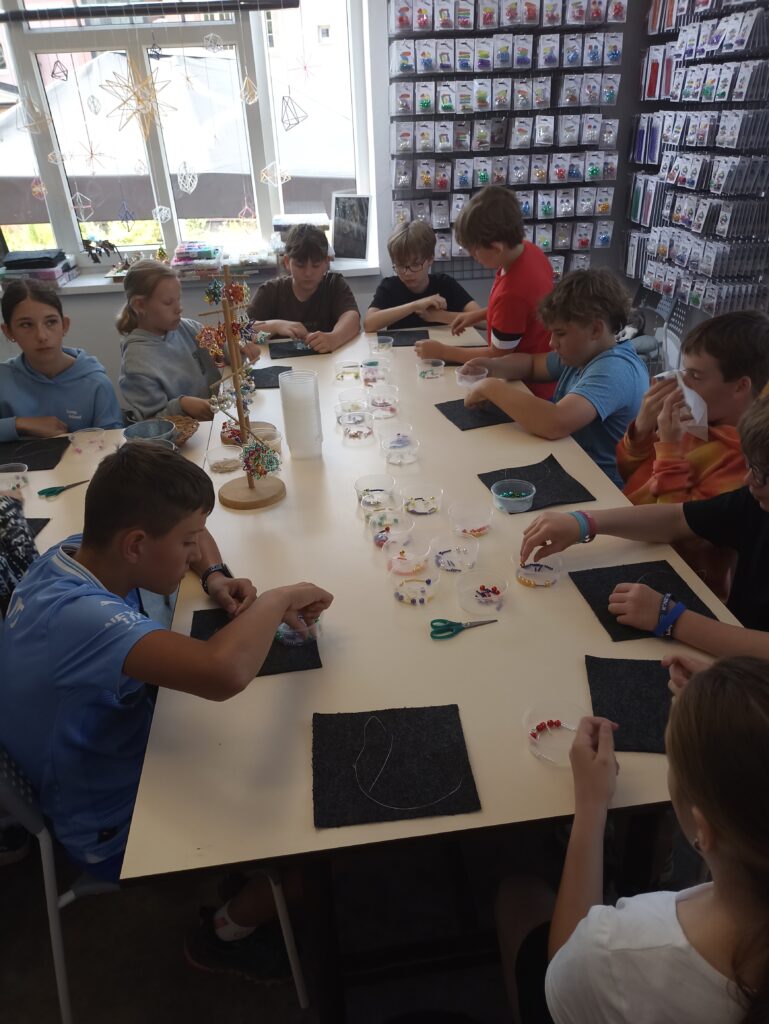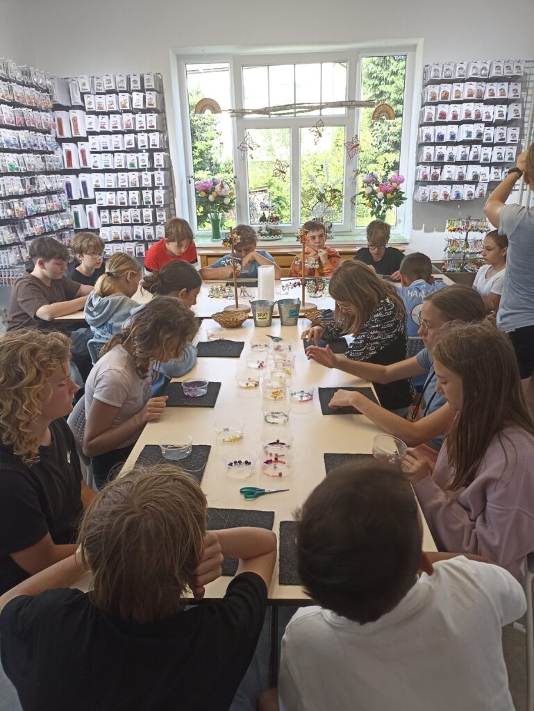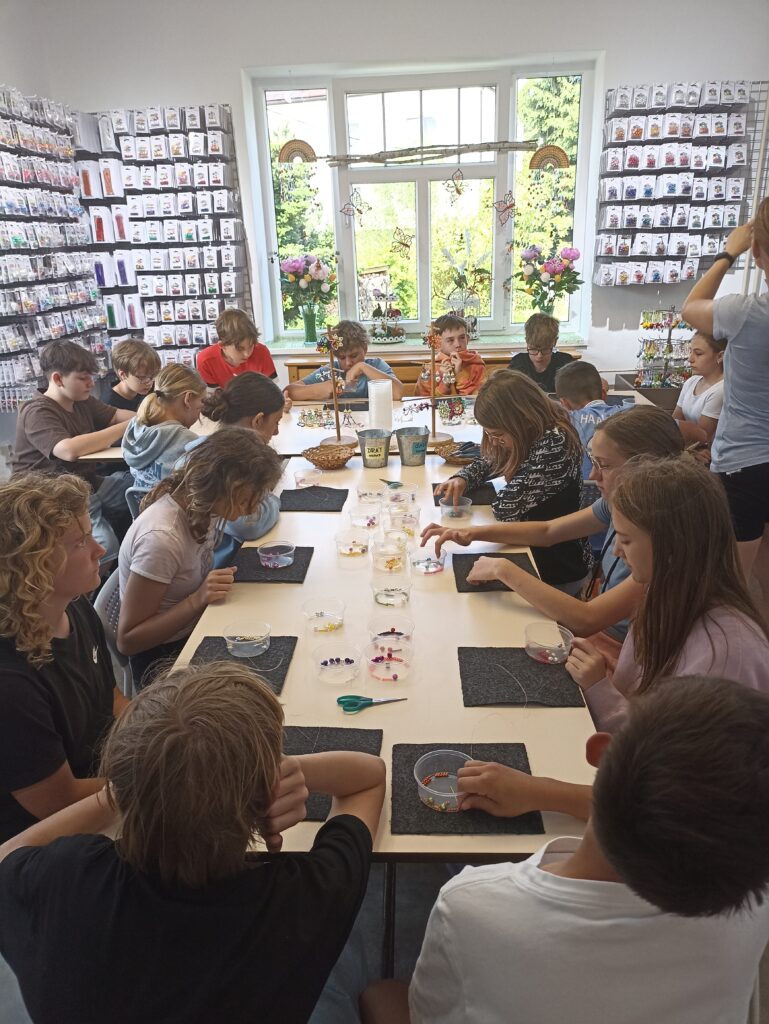 Dopoledne bylo ve znamení návštěvy řemeslné dílny v obci Poniklá. Vydali jsme se na exkurzi do rodinné firmy Rautis, která se zabývá foukáním skleněných perlí a výrobou perličkových vánočních ozdob. Od roku 2020 je zapsána na seznamu nehmotného kulturního dědictví UNESCO. Prohlédli jsme si samotnou výrobu, kdy jsme mohli nakouknout zaměstnancům přes rameno, a pak si žáci zkusili vyrobit vlastní ozdobu.