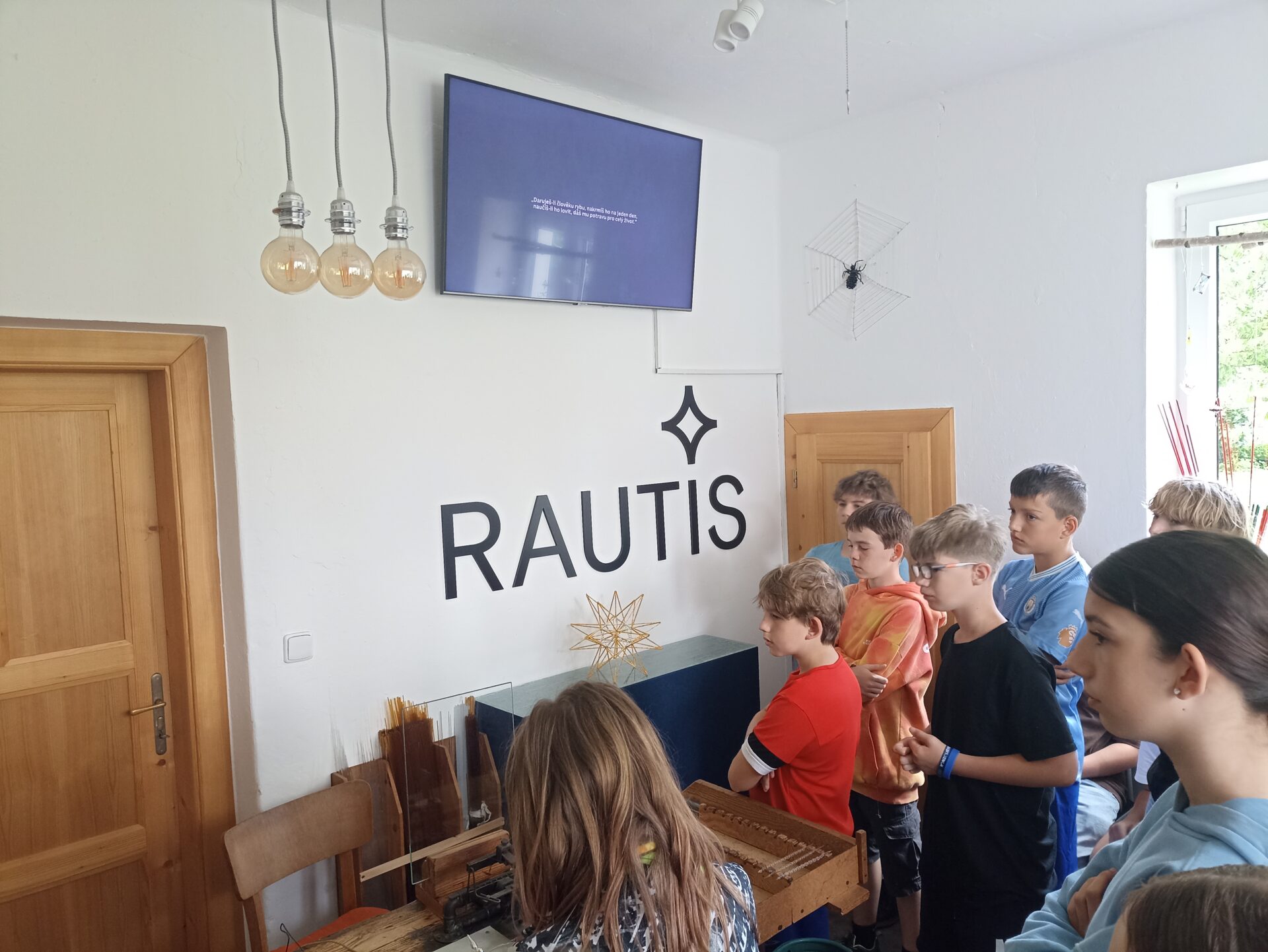 Dopoledne bylo ve znamení návštěvy řemeslné dílny v obci Poniklá. Vydali jsme se na exkurzi do rodinné firmy Rautis, která se zabývá foukáním skleněných perlí a výrobou perličkových vánočních ozdob. Od roku 2020 je zapsána na seznamu nehmotného kulturního dědictví UNESCO. Prohlédli jsme si samotnou výrobu, kdy jsme mohli nakouknout zaměstnancům přes rameno, a pak si žáci zkusili vyrobit vlastní ozdobu.