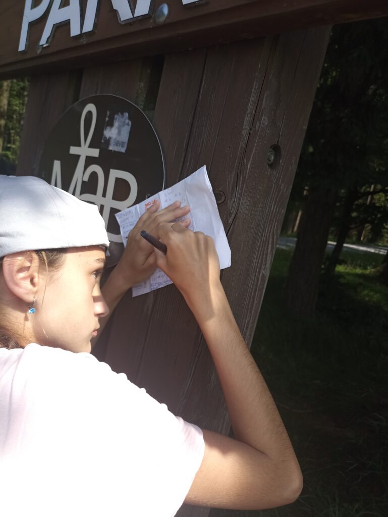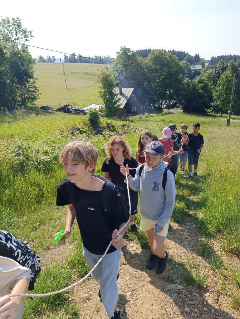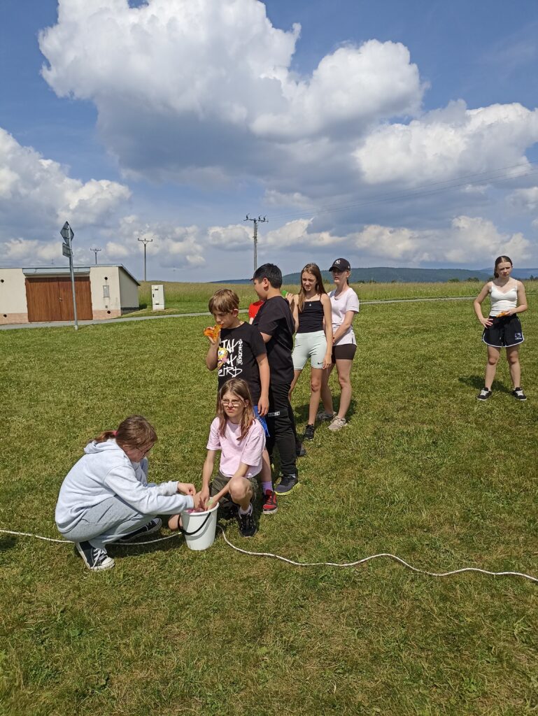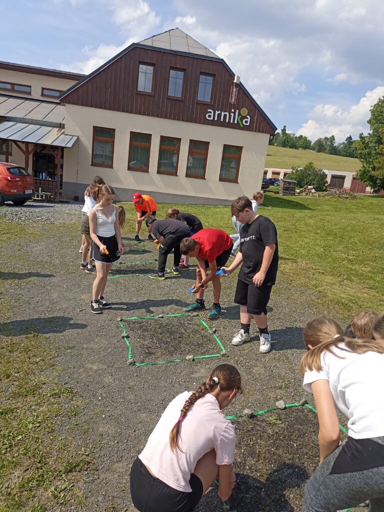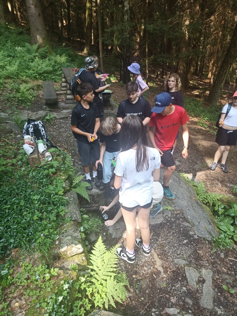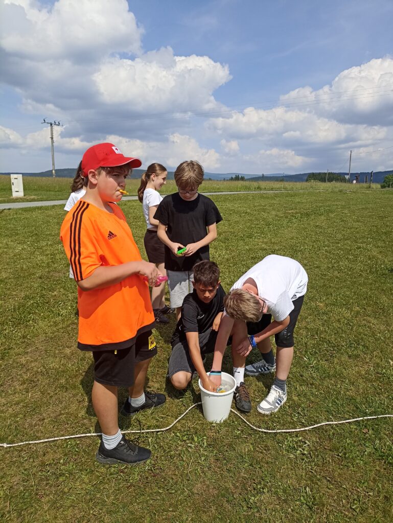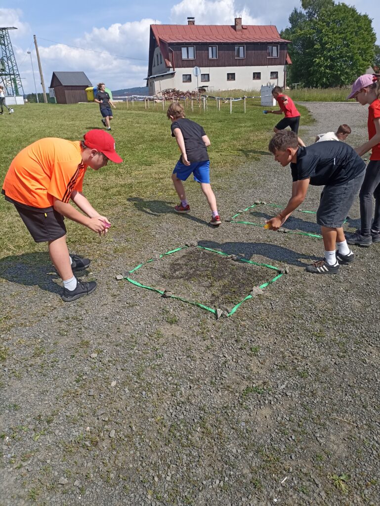 Třetí den jsme si díky slunečnému počasí užili na maximum. Abychom se nepřehřáli, vzali jsme si s sebou ven vodní pistolky. Dopoledne jsme našli dvě kešky. Pro některé šesťáky to byly první kešky v životě a možná budou v geocachingu pokračovat i po návratu domů.