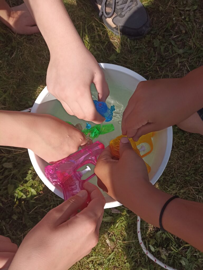 Slunce vydatně svítilo i odpoledne, takže byly pistolky i nadále součástí programu - týmové hry a aktivity.