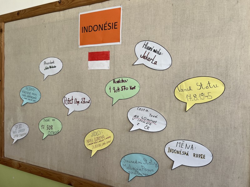 Jako každý rok nás i v tomto školním roce čekalo promítání cestovatelů, kteří nás poutavou formou seznamují se svým putováním. Letos jsme se díky nim podívali do Indonésie. Před návštěvou kina jsme ve třídě vyrobili k tomuto tématu nástěnku.