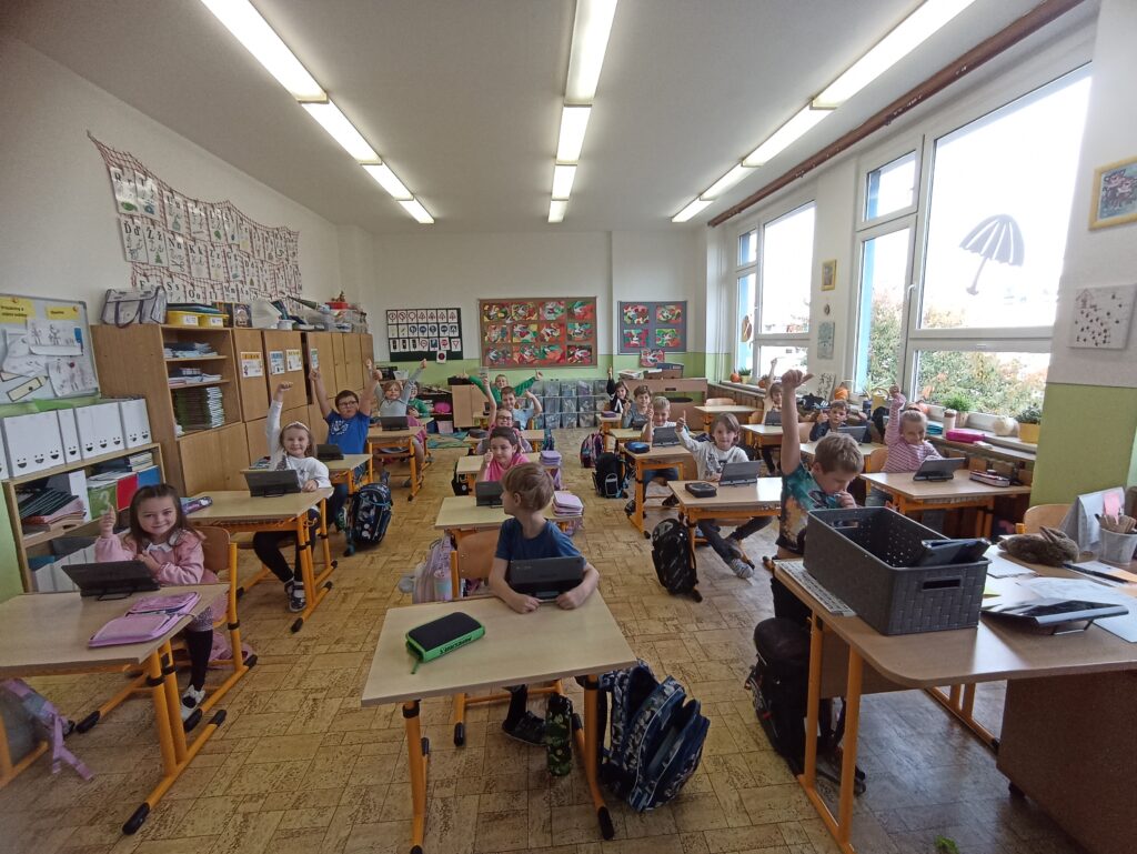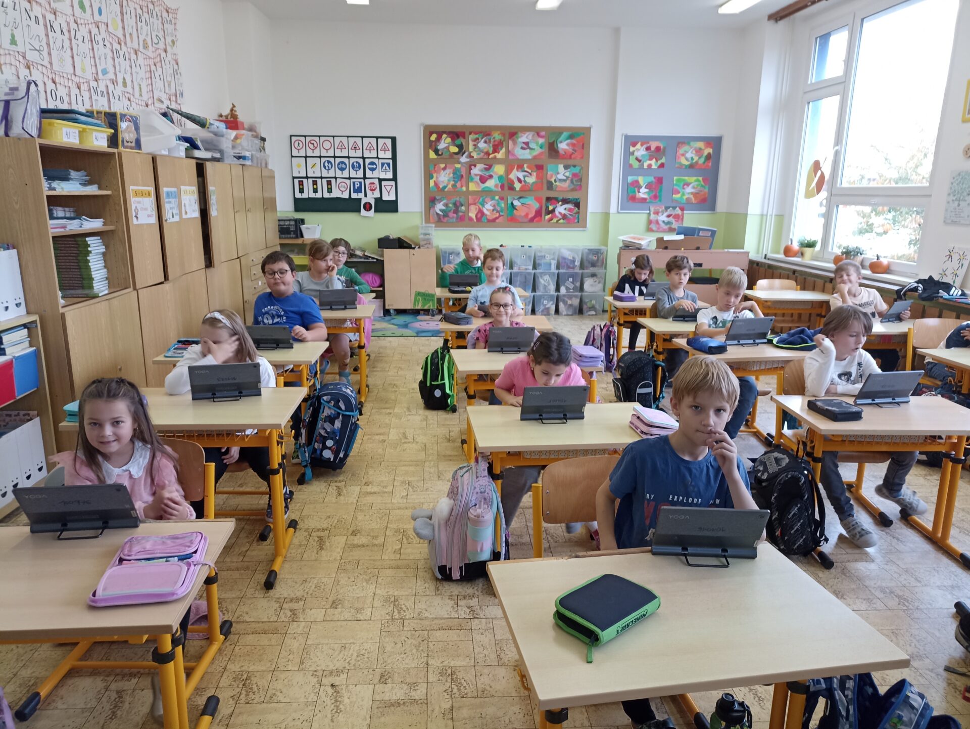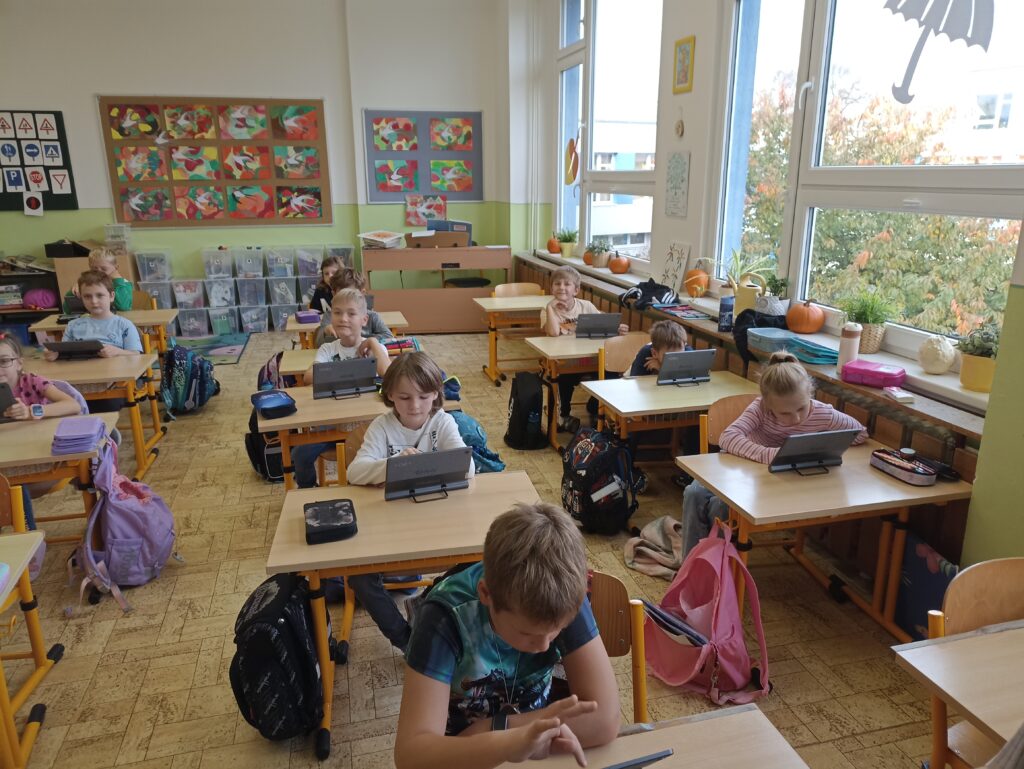 S radostí využíváme školní tablety  v hodinách matematiky.