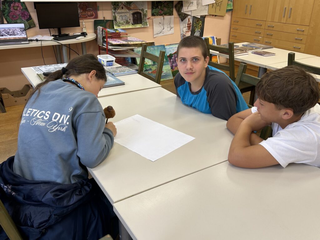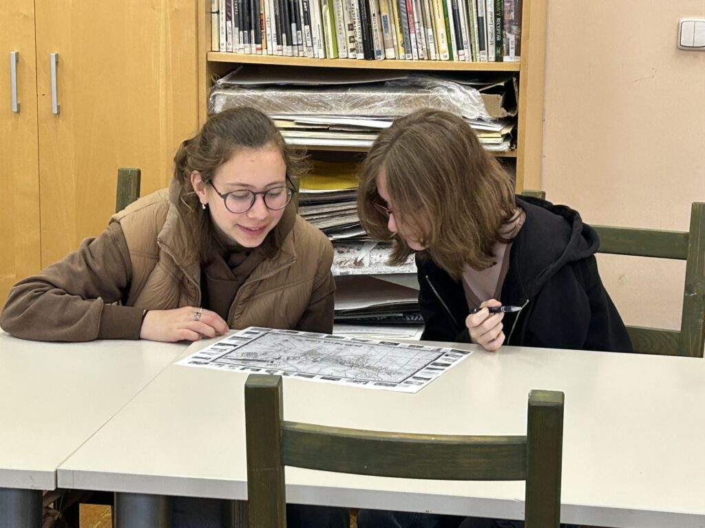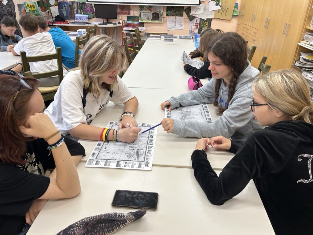 Od rána pršelo, takže bylo fajn, že jsme začali v ateliéru knihovny, kde jsme pracovali s mapou a starými fotkami lounských budov. Byli jsme překvapeni, jak Louny dříve vypadaly.