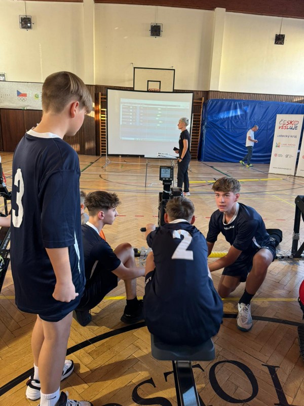 Veslování - Adélka, Uli a Brenky a za kluky: David H., Kuba P. a Dan P.