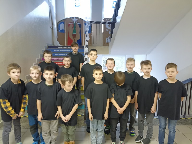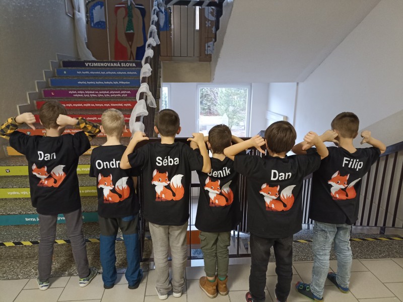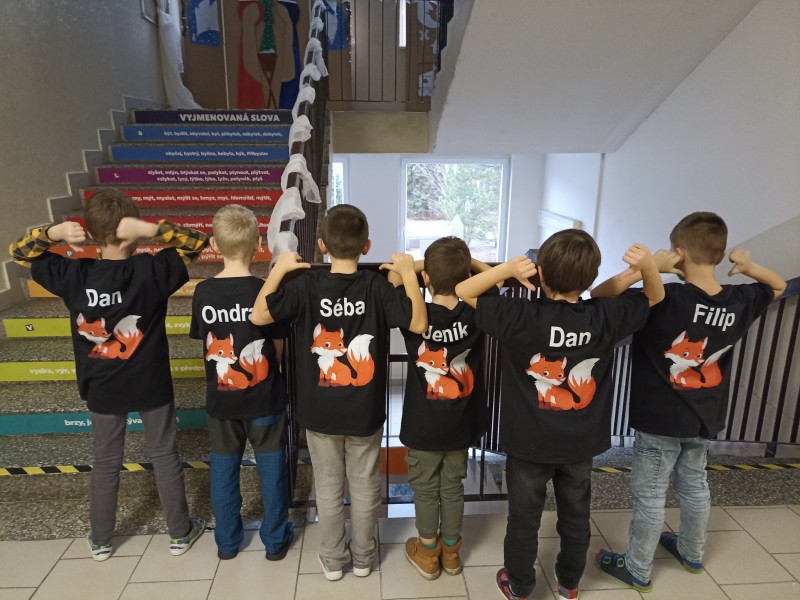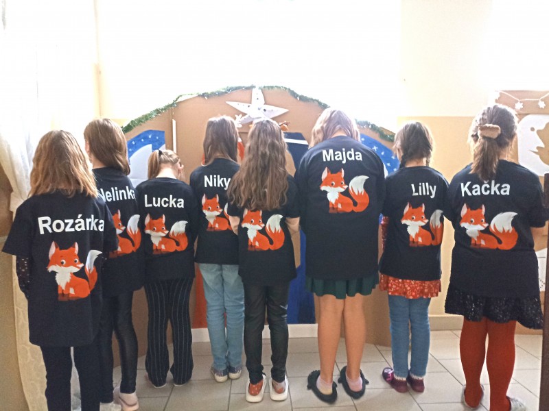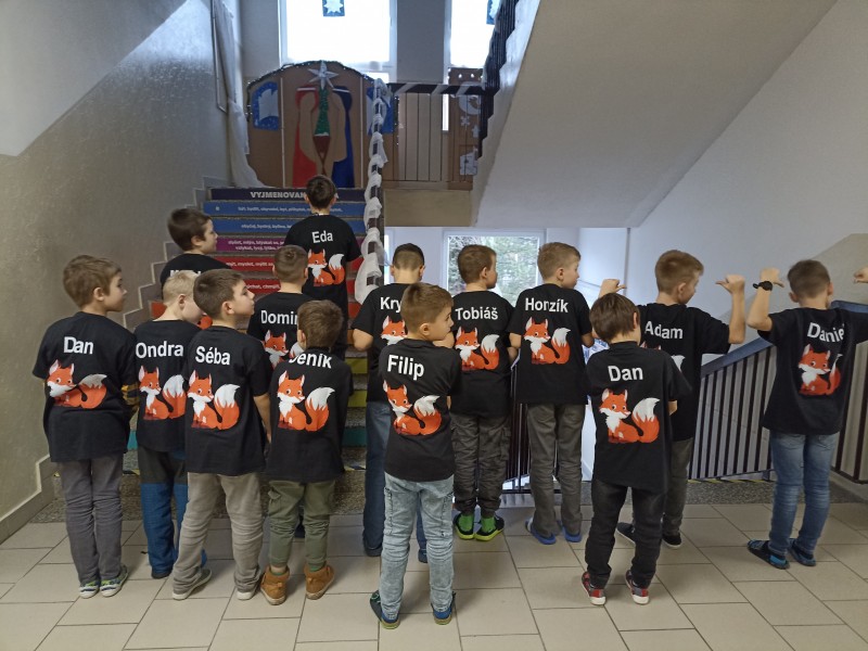 Pod stromečkem jsme našli nádherně zabalené dárečky.V nich byla ukryta liščí trička.Radost byla veliká Podívejte, jak nám všem nová trička sluší...