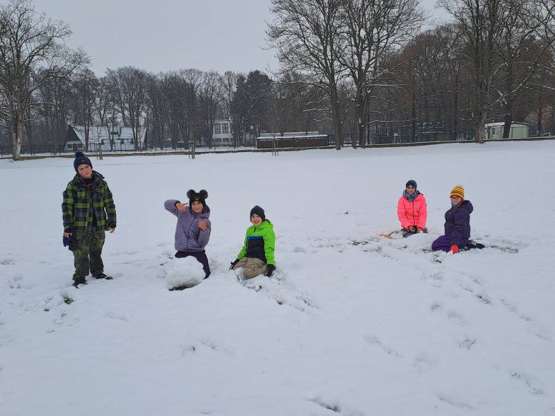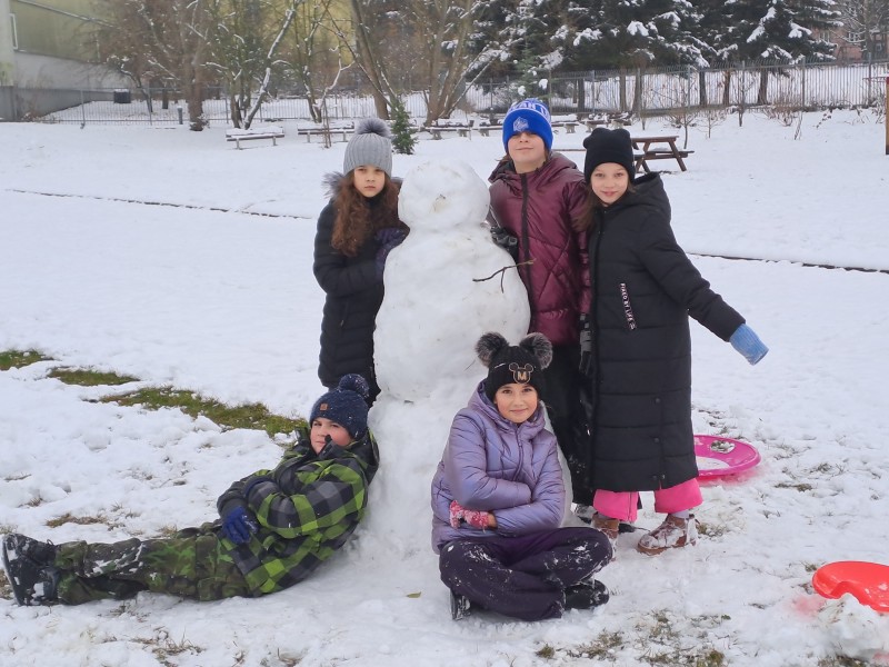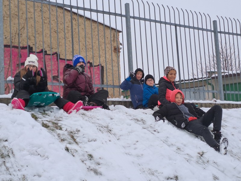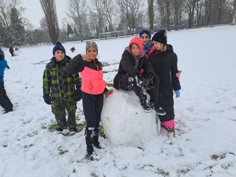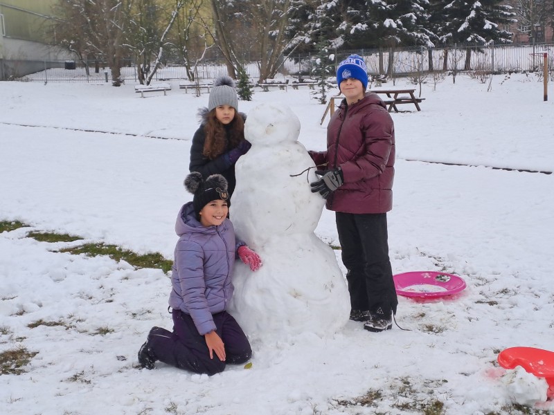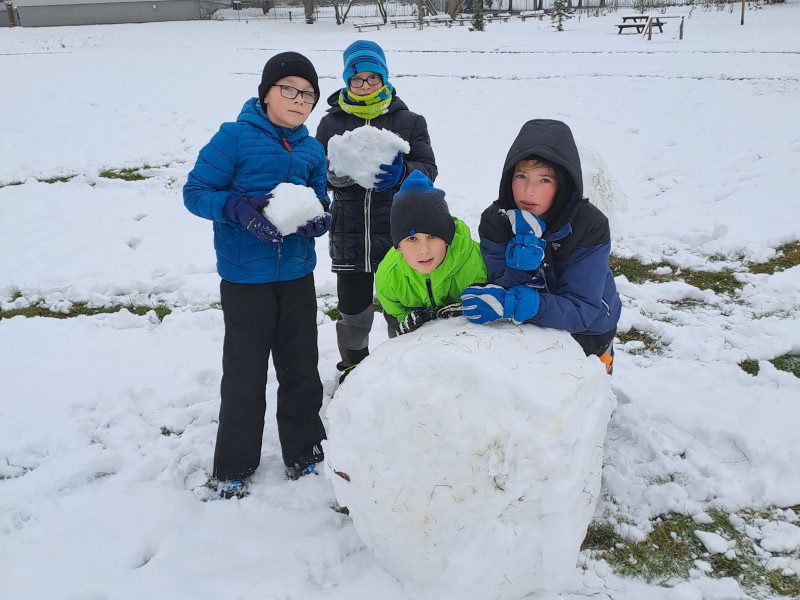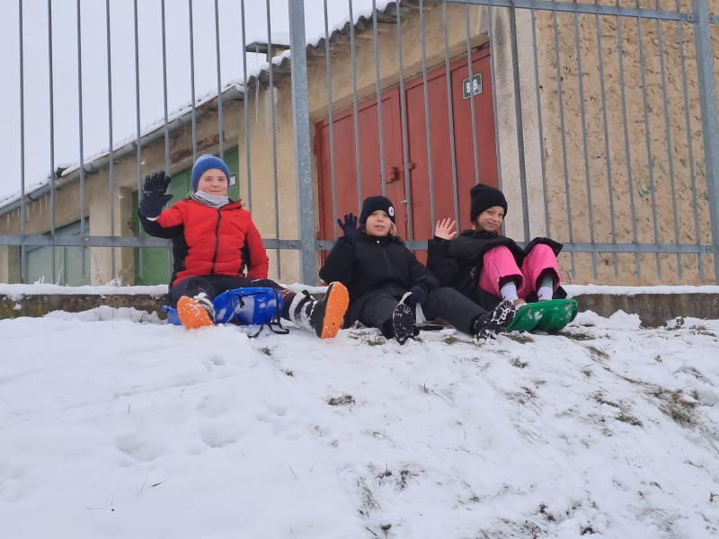 V prosinci jsme si užili sněhovou nadílku. Na školním hřišti jsme se svezli a nakonec i vyzkoušeli sněhové stavby.