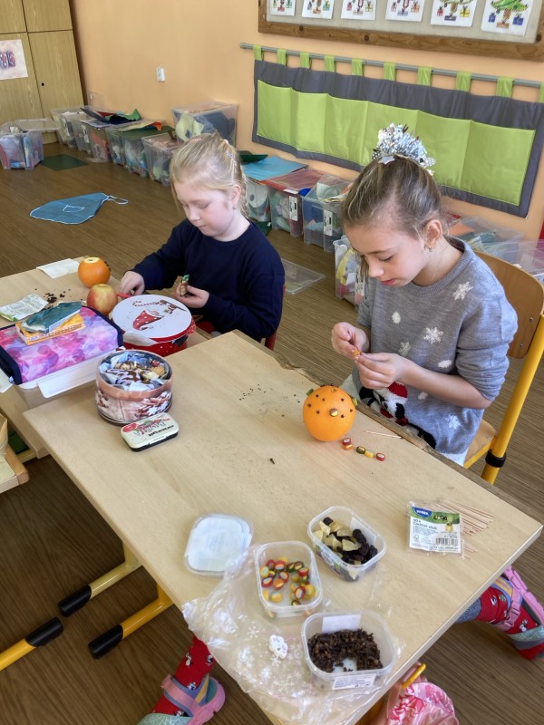 Koledy, vyrábění svícnu a přáníčka, zpívání na chodbě , prostě krásně prožitý poslední školní pátek .