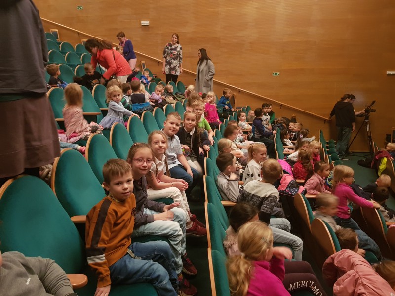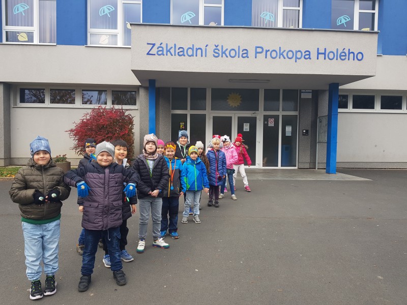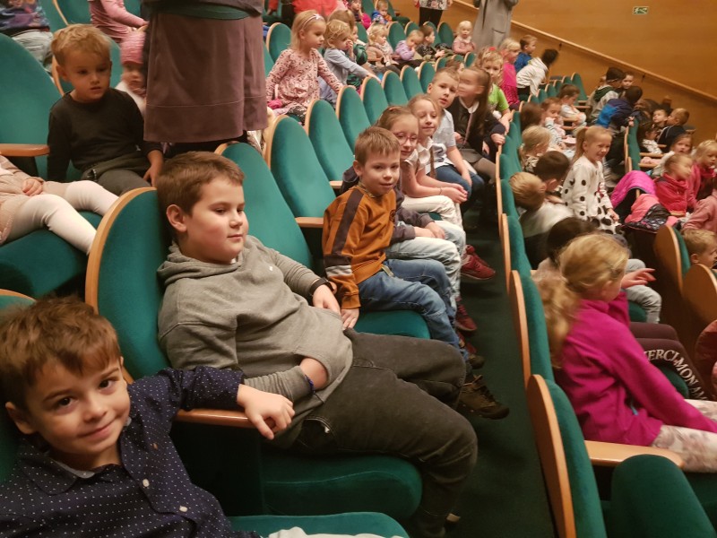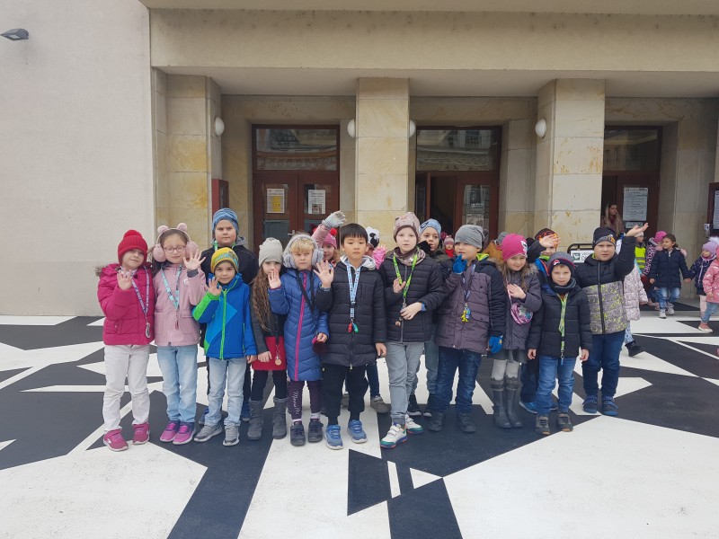 Představení Tomík mezi dinosaury dnes děti shlédly ve Vrchlického divadle. Do školy přišly svátečně oblečené a s veselou náladou.