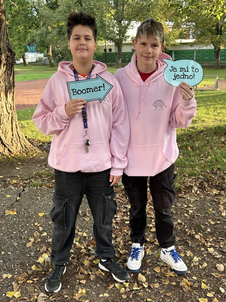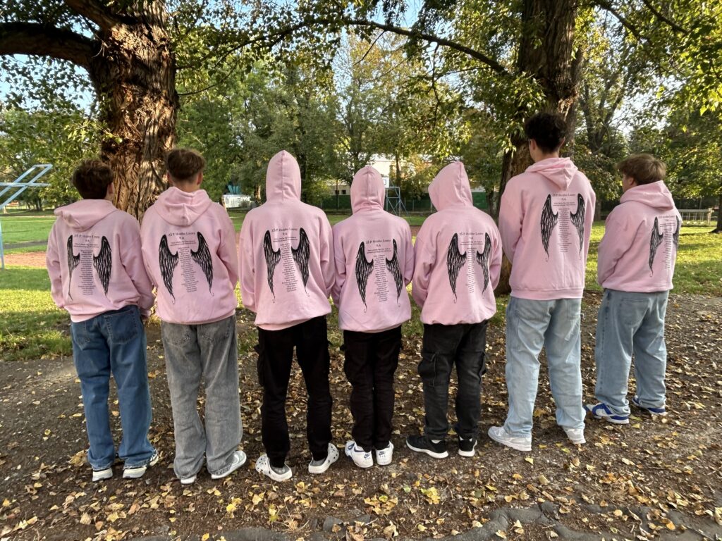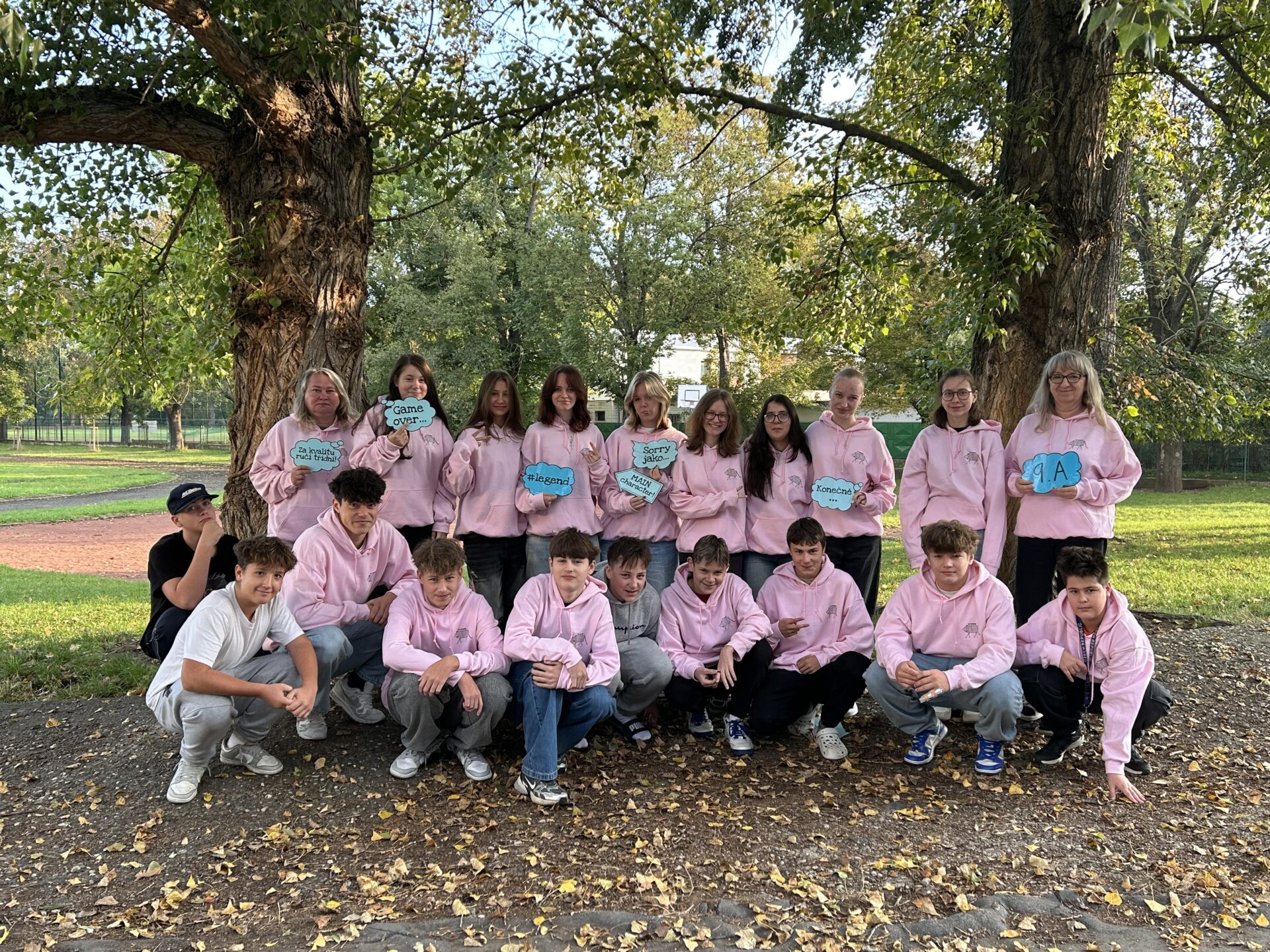 V pondělí 29. září nám přišly naše třídní "deváťácké" mikiny. Podívejte, jak nám to sluší :-)