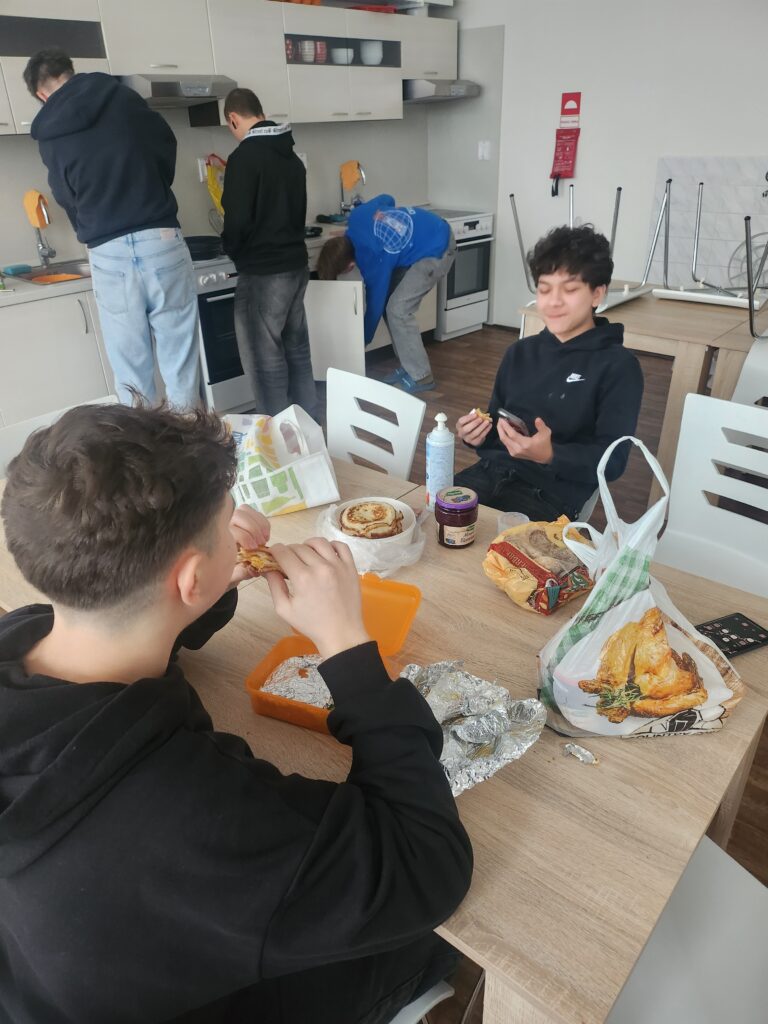 O jídlo jsme se mezi sebou podělili a mohli tak ochutnat, jak si každý z nás snídani připravuje trochu jinak. Celou hodinu panovala pohodová a přátelská atmosféra, kterou jsme si odnesli i do zbytku dne.