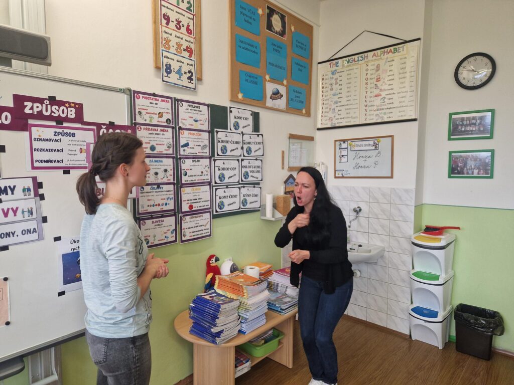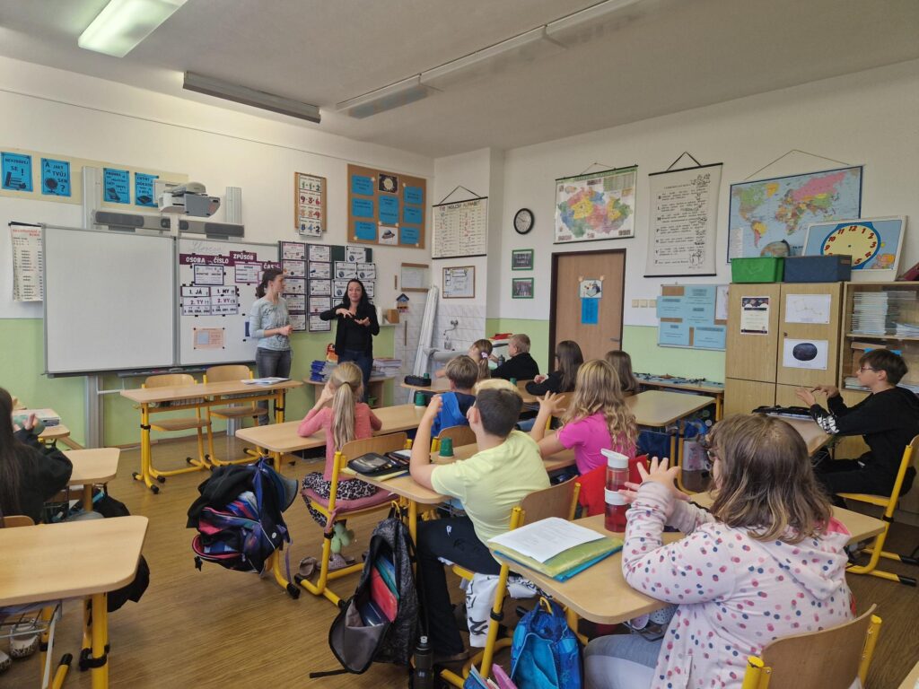 Měli jsme možnost přivítat u nás ve třídě dvě paní překladatelky, které pomáhají naši přirozenou mluvu překládat do jazyka neslyšících.