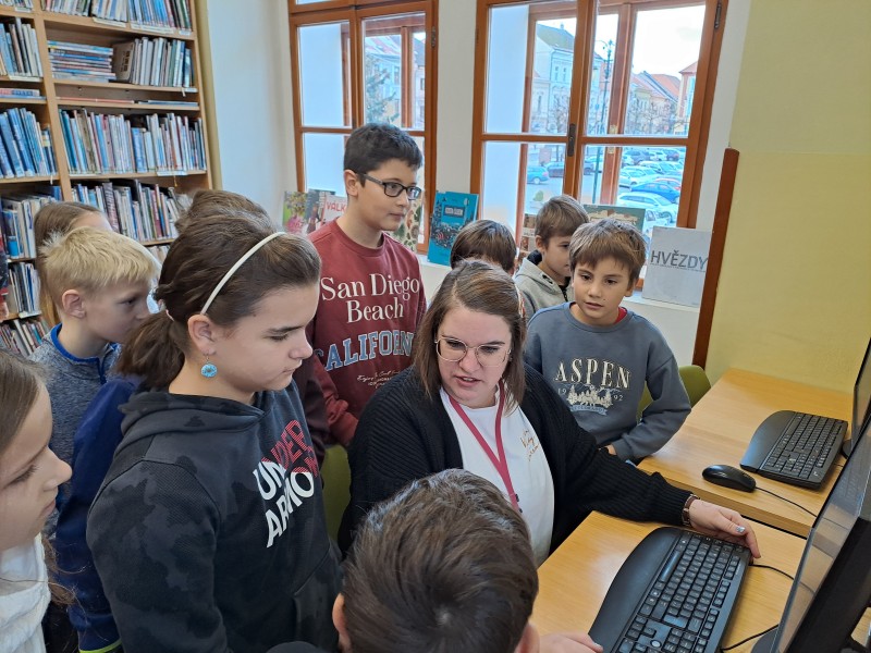 V listopadu jsme si zašli do lounské knihovny. S paní knihovnicí jsme se učili, jak a kde si vyhledat knížky. Nakonec si čtenáři mohli i nějaké knihy zapůjčit nebo vyměnit.