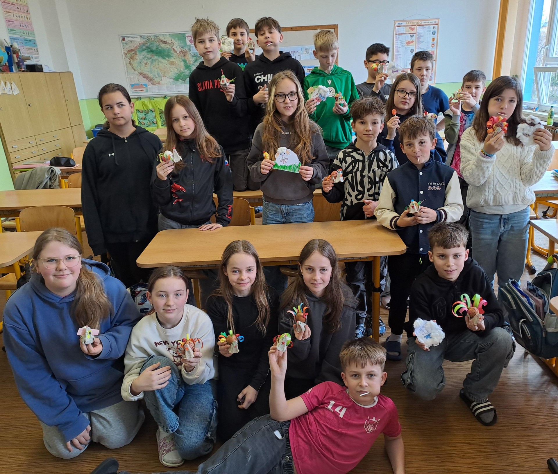 Před prázdninami jsme si připomněli jarní zvyky a tradice. Vyzkoušeli jsme si zdobení vajíček voskem a vyrobili velikonoční dekoraci.