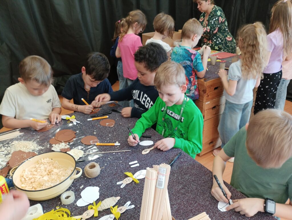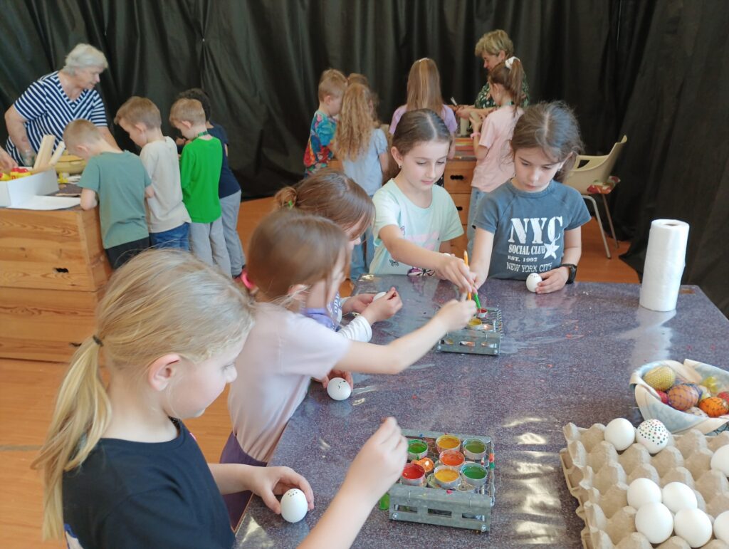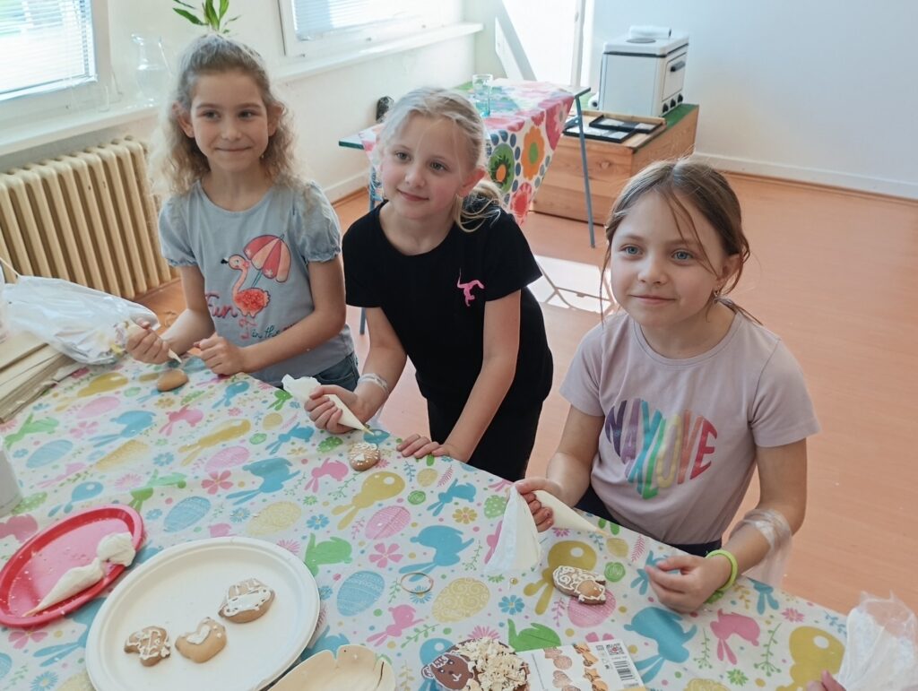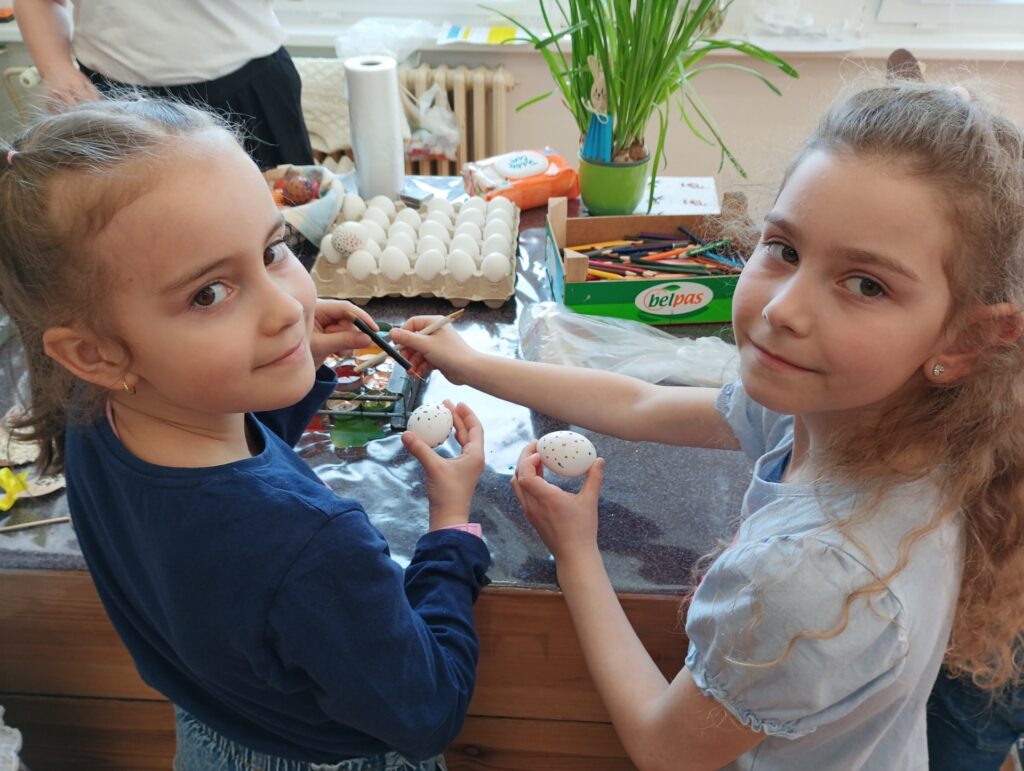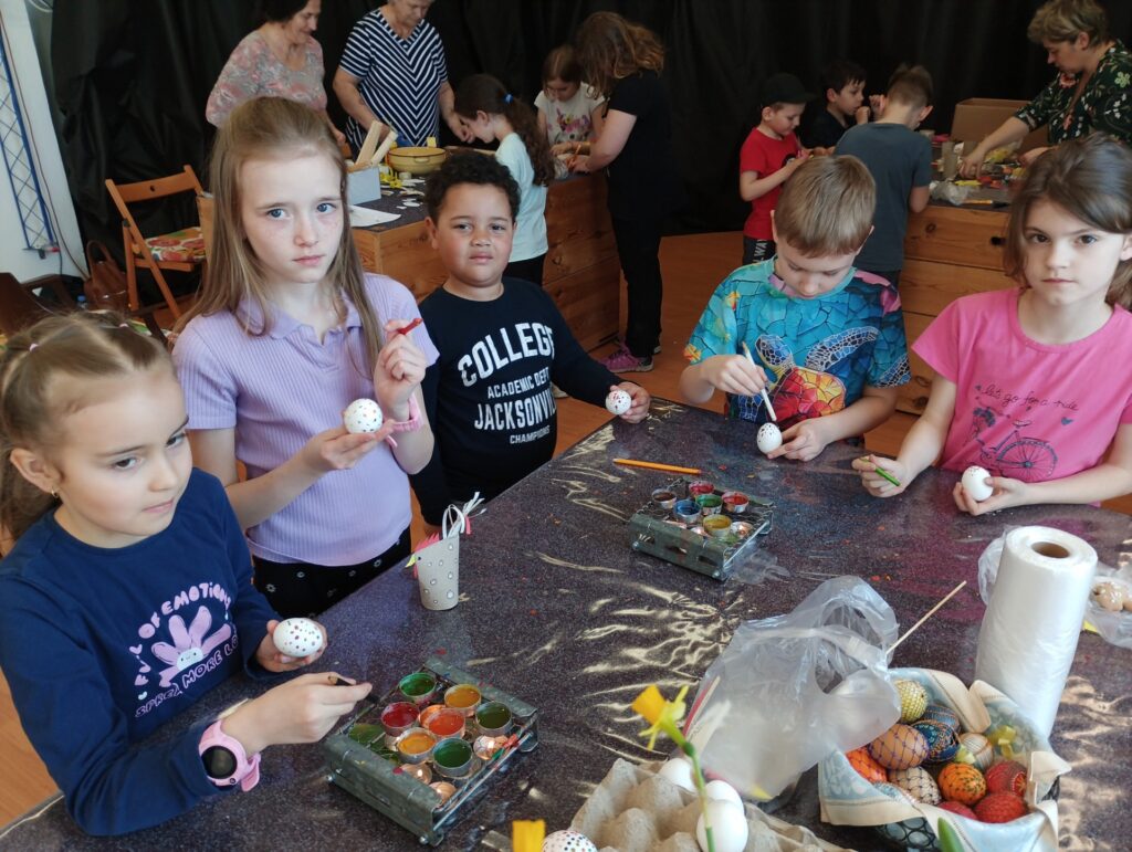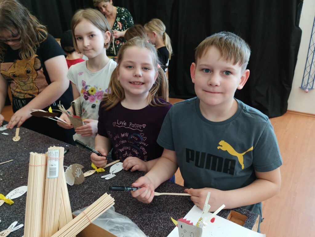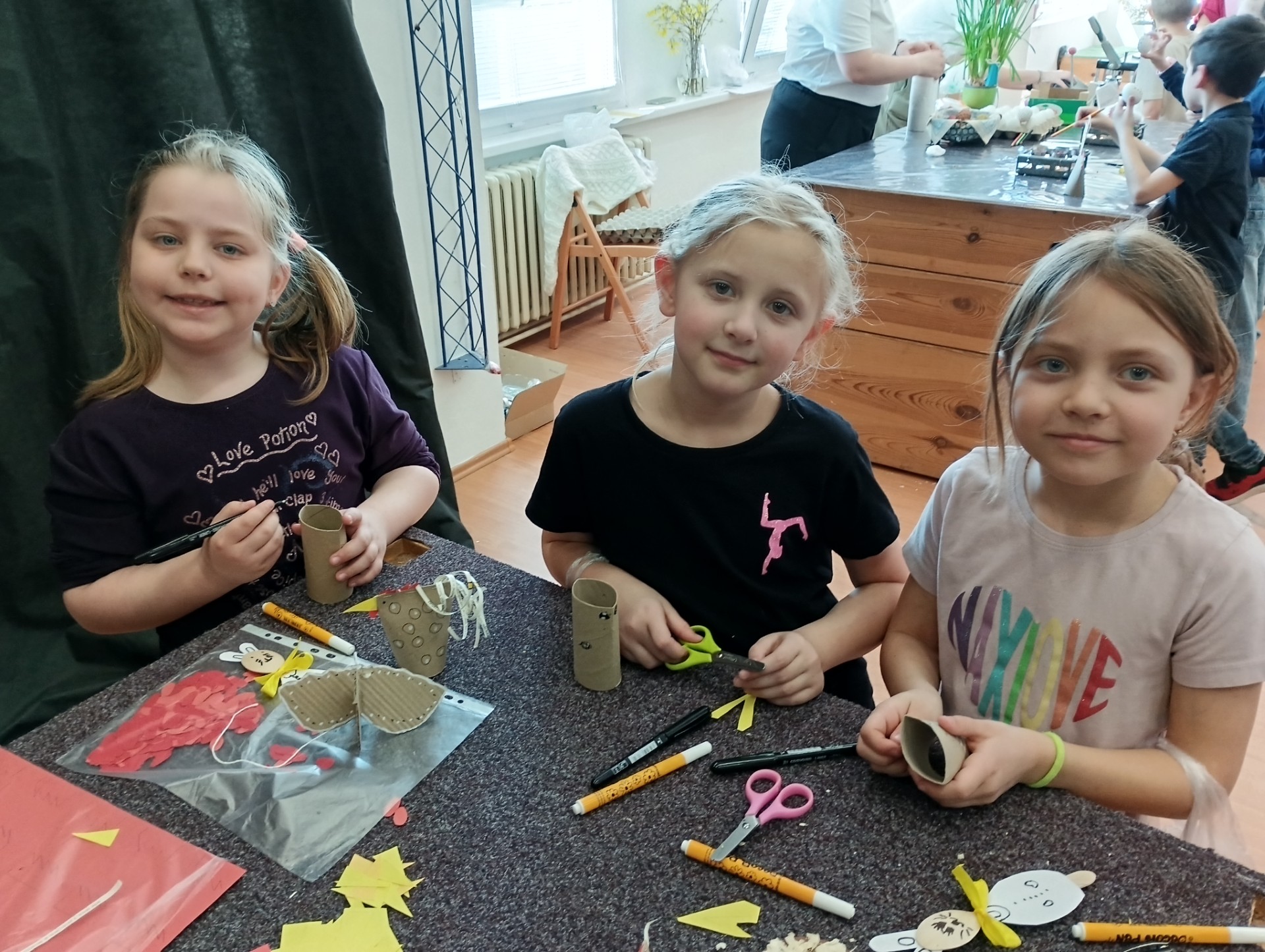 V pátek 4. dubna využila školní družina pozvání do klubovny LUNA na velikonoční tvoření. Děti si mohly vyrobit slepičku, ovečku a ptáčky z recyklovaných materiálů. Zdobily perníčky, malovaly kraslice a chlapci se mohli podívat, jak se plete pomlázka. Moc děkujeme pořadatelům za přípravu a děti si zaslouží pochvalu.
