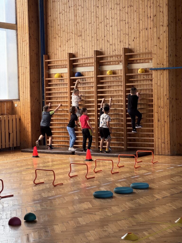 Dne 8. dubna uspořádala třída 6. A pro žáky prvních tříd velikonoční sportovní stezku plnou her a zábavy. Pro malé účastníky byla připravena pestrá stanoviště, na kterých si mohli vyzkoušet například opičí dráhu, velikonoční pexeso, skládání vajíčka jako puzzle, házení míčků do koše nebo běžecké úkoly.