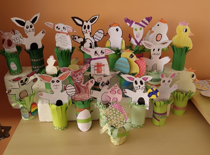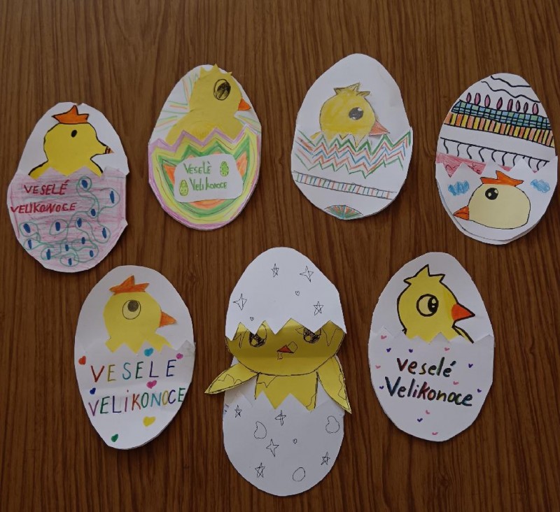V posledních dnech jsme jsme tvořili ,,velikonočně". Vyráběli jsme věnce, přání, stolní dekoraci, malovali jsme vejce. Dnes jsme hráli hru: hledali jsme vajíčka se slovními přesmyčkami a posléze z nich skládali básničku. Všem přejeme ,,veselé Velikonoce".