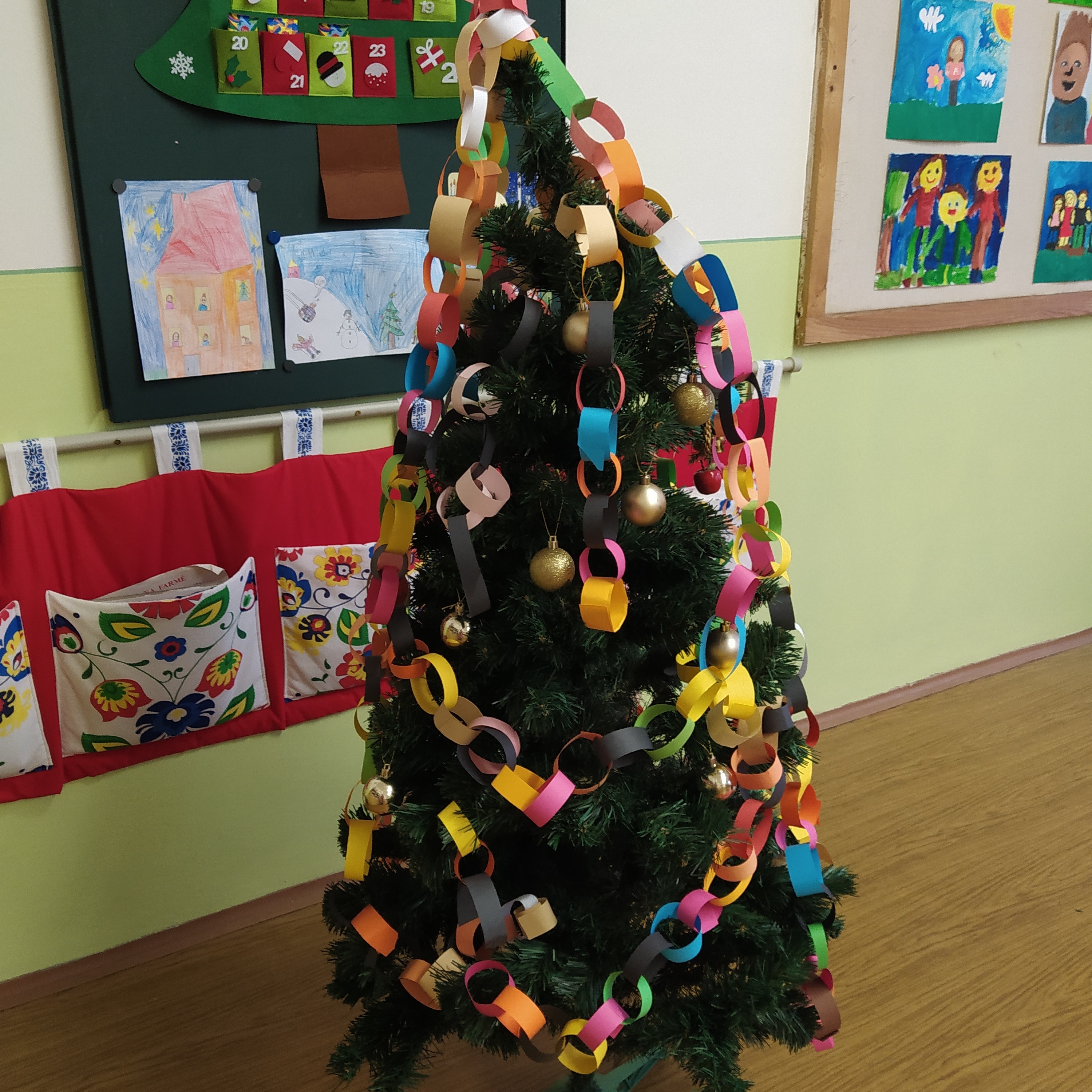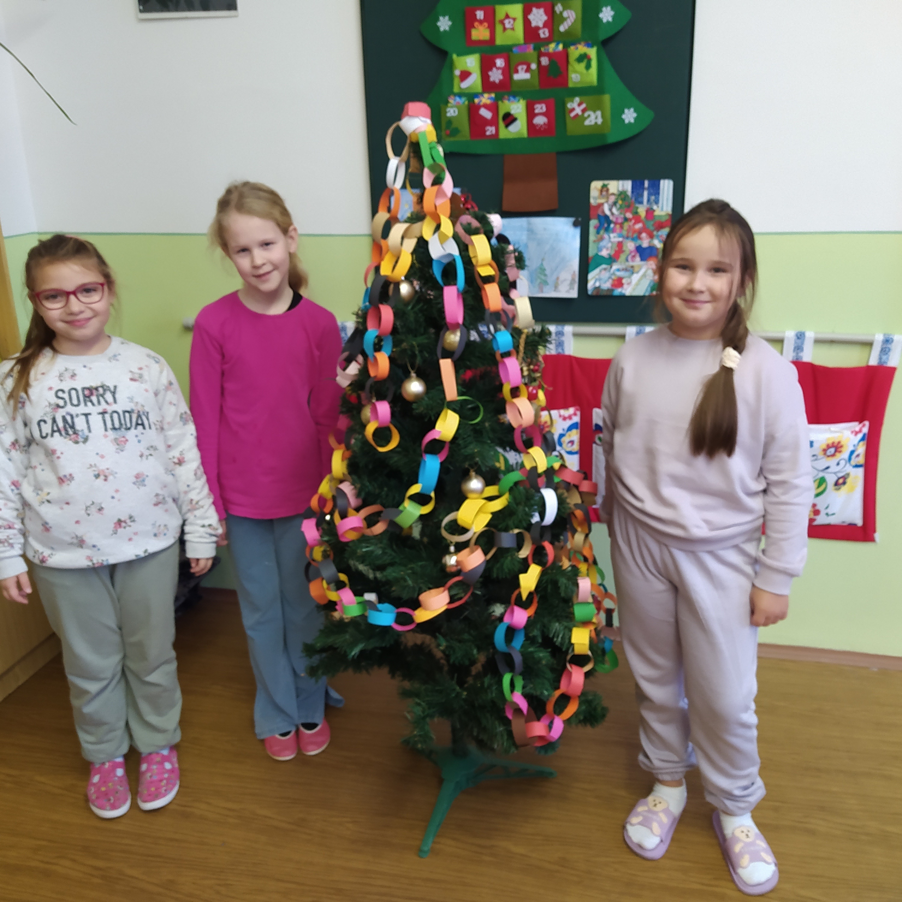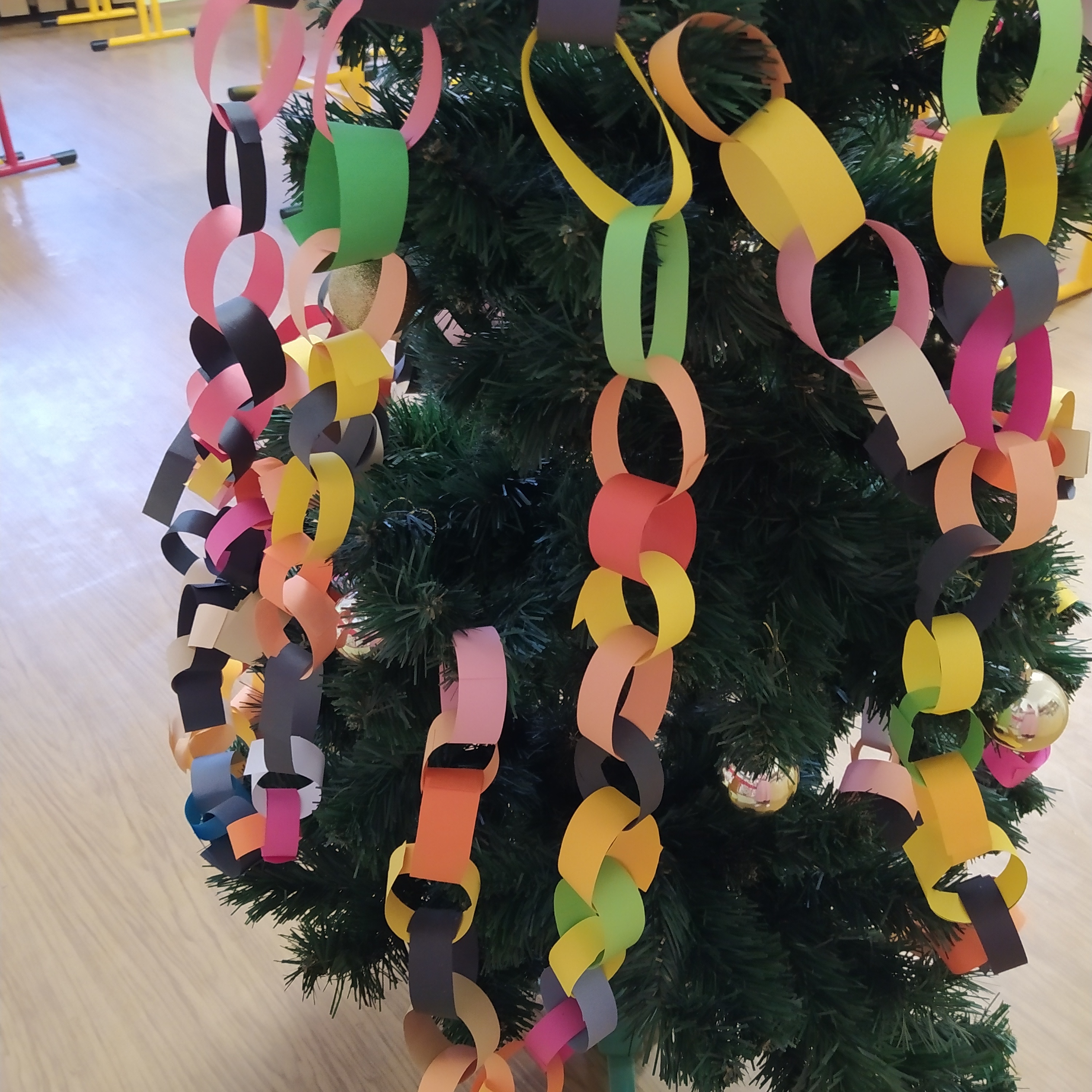 Pospojovali jsme téměř 300 barevných proužků a vytvořili jsme si vánoční řetěz!