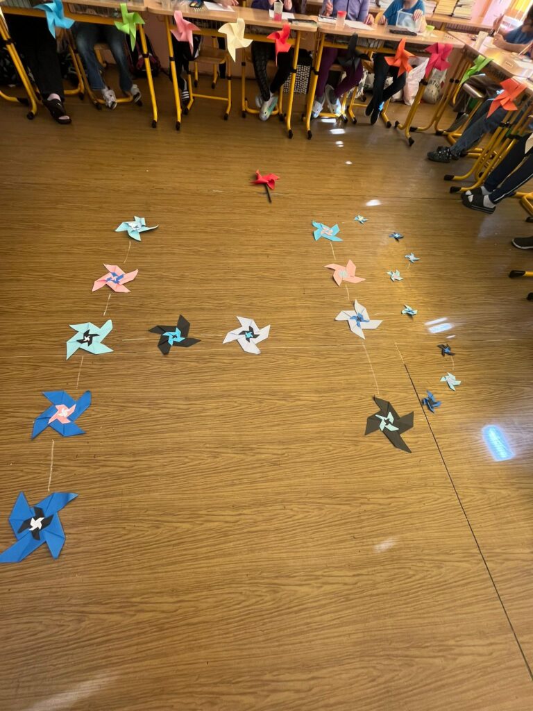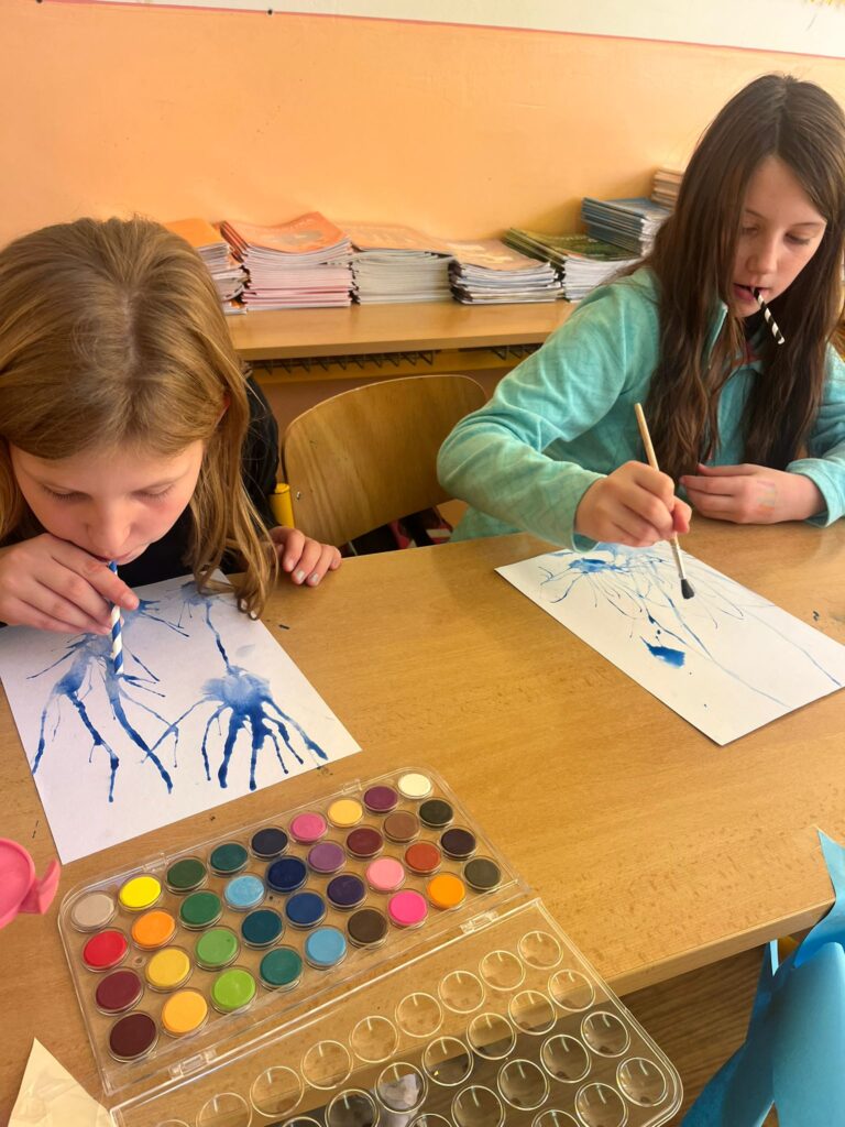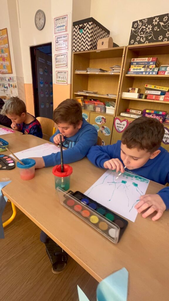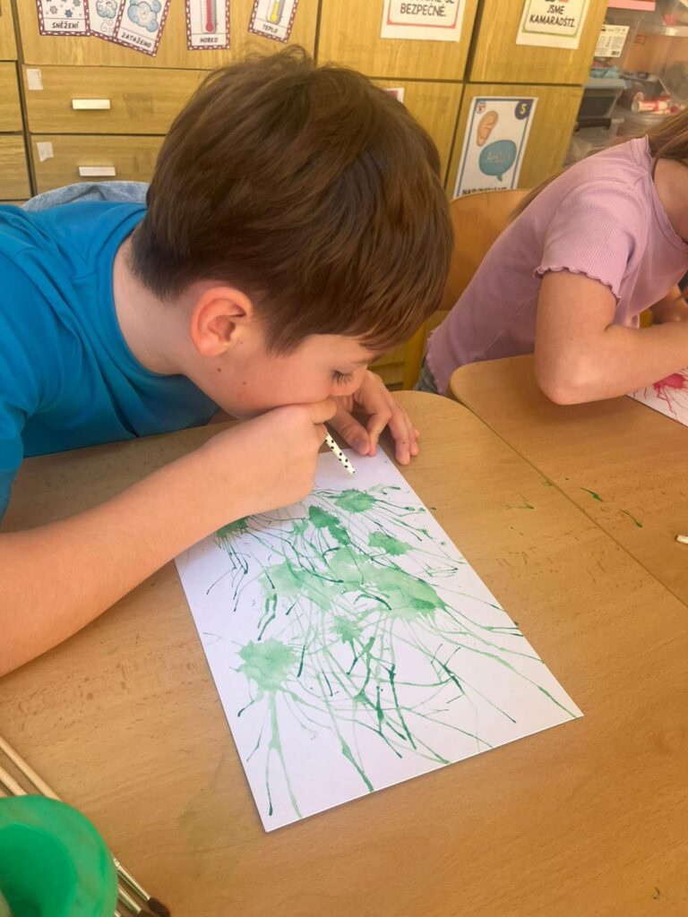Čtvrťáci se zapojili do Větrníkového dne a celý den věnovali tvořivým aktivitám. Děti foukaly barevné obrázky pomocí brčka, čímž vznikly originální a veselé abstraktní malby. Poté si každý žák vyrobil svůj vlastní papírový větrník, který symbolizuje pomoc dětem s cystickou fibrózou.