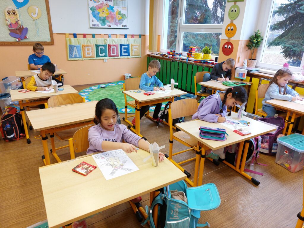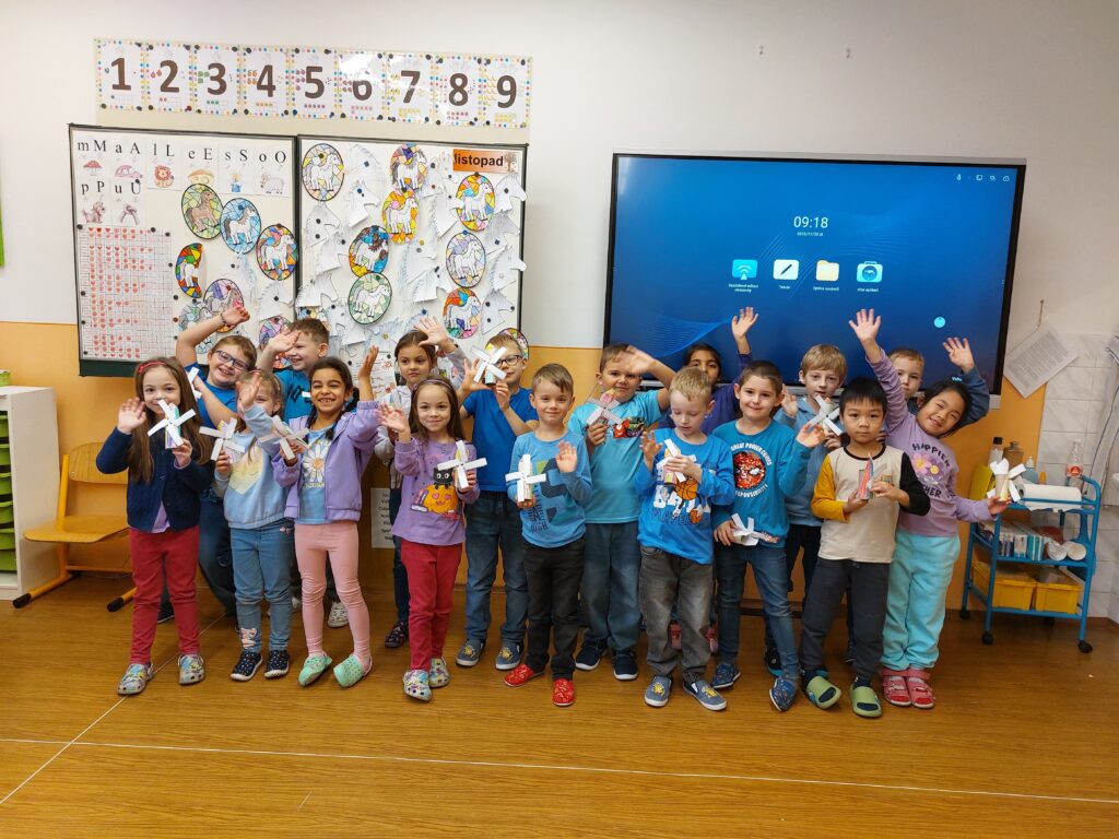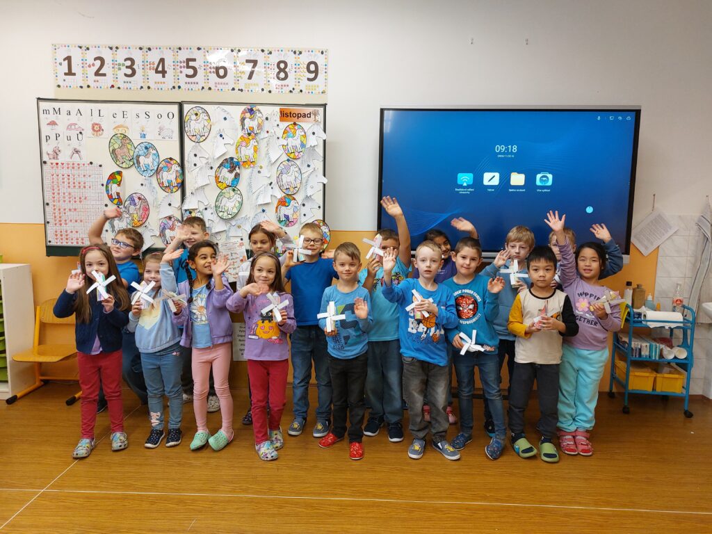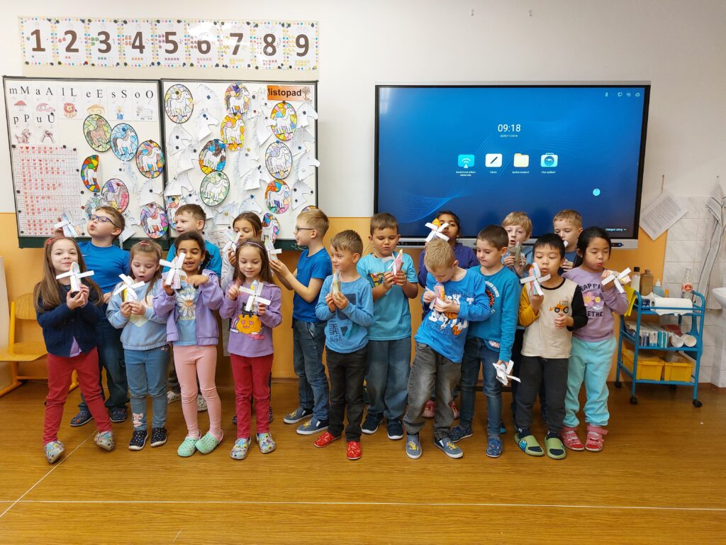 Celý týden jsme pracovali na projektu, abychom mohli představit naše výrobky přesně 21. 11., kdy děti s cystickou fibrózou slaví svůj Větrníkový den. Společně jsme si vyprávěli o pomoci druhým, vyráběli větrníky a symbolicky tak vyjádřili podporu všem, kteří s tímto onemocněním bojují.