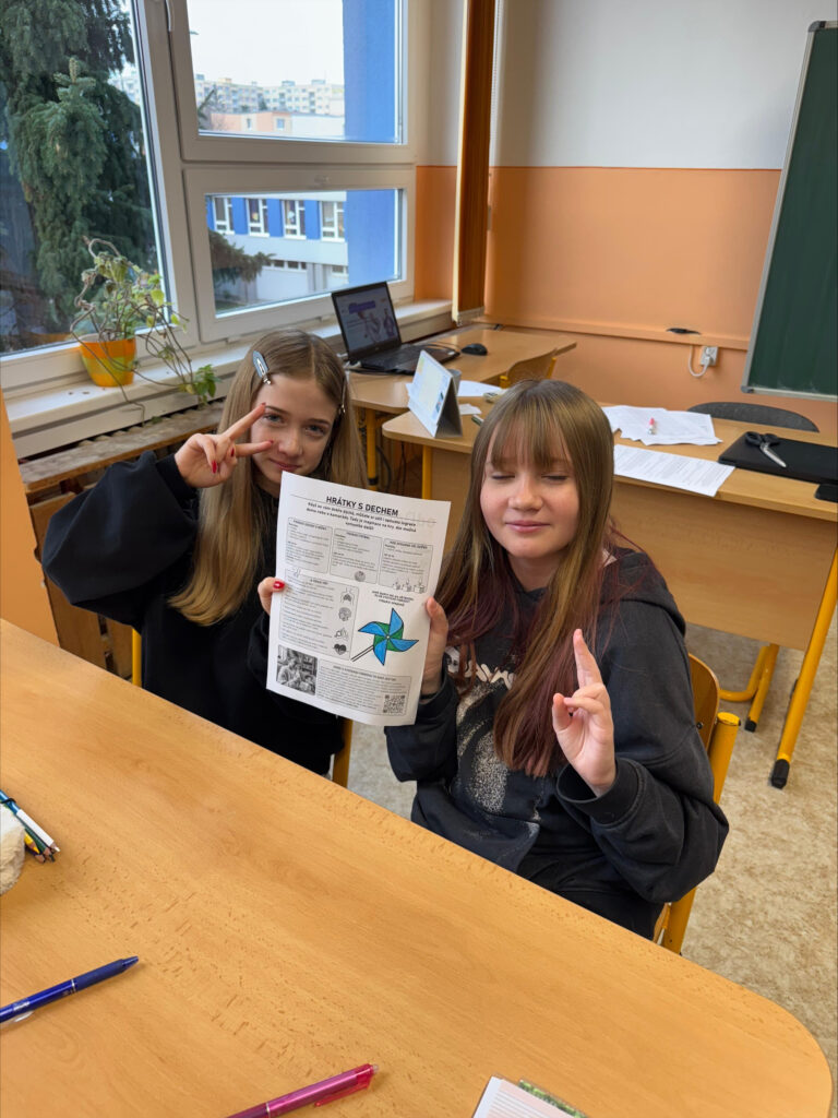 V pátek se naše škola připojila k celorepublikové akci Větrníkový den, který upozorňuje na život lidí s cystickou fibrózou a podporuje jejich rodiny. Do programu se aktivně zapojila i třída 6. B, která si během vyučovací hodiny připravila zábavné, ale i poučné aktivity zaměřené na práci s dechem.