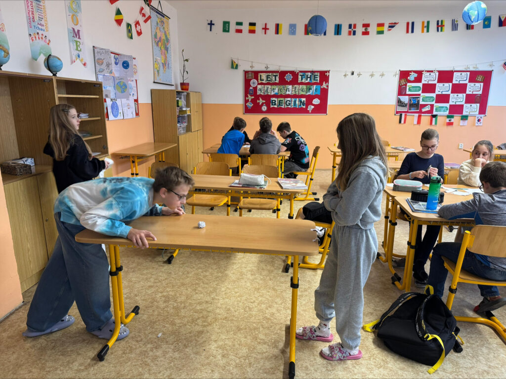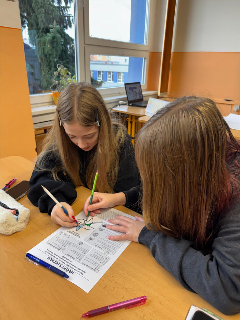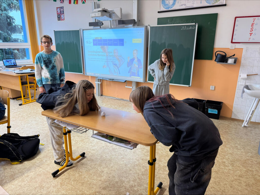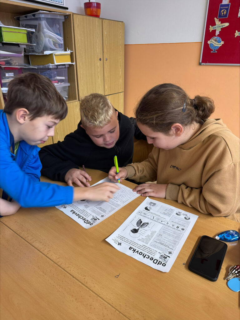 Atmosféra ve třídě byla skvělá – žáci pracovali ve skupinách, spolupracovali a zároveň se dozvěděli mnoho zajímavých informací o tom, proč se Větrníkový den každoročně pořádá.