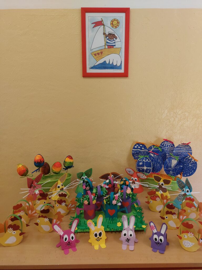 Děti ze školní družiny se pochlubily výstavkou jarních prací. Jsme opravdu šikovní.